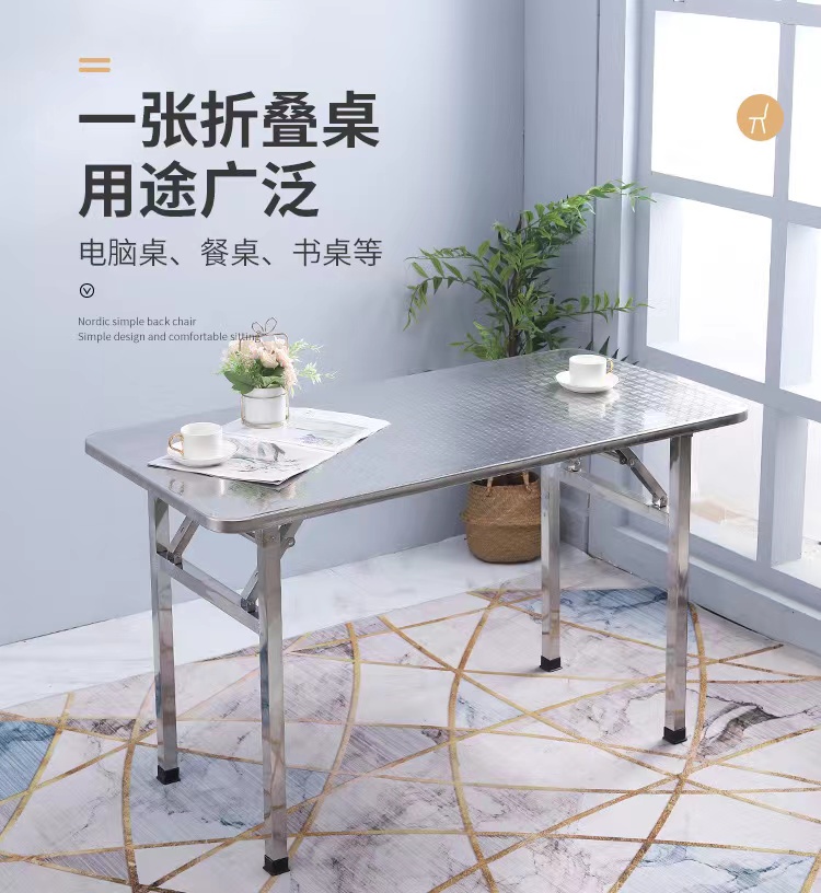 Thickened stainless steel folding table folding rectangular table stainless steel conjoined folding rectangular table stainless steel table bar table-Taobao
