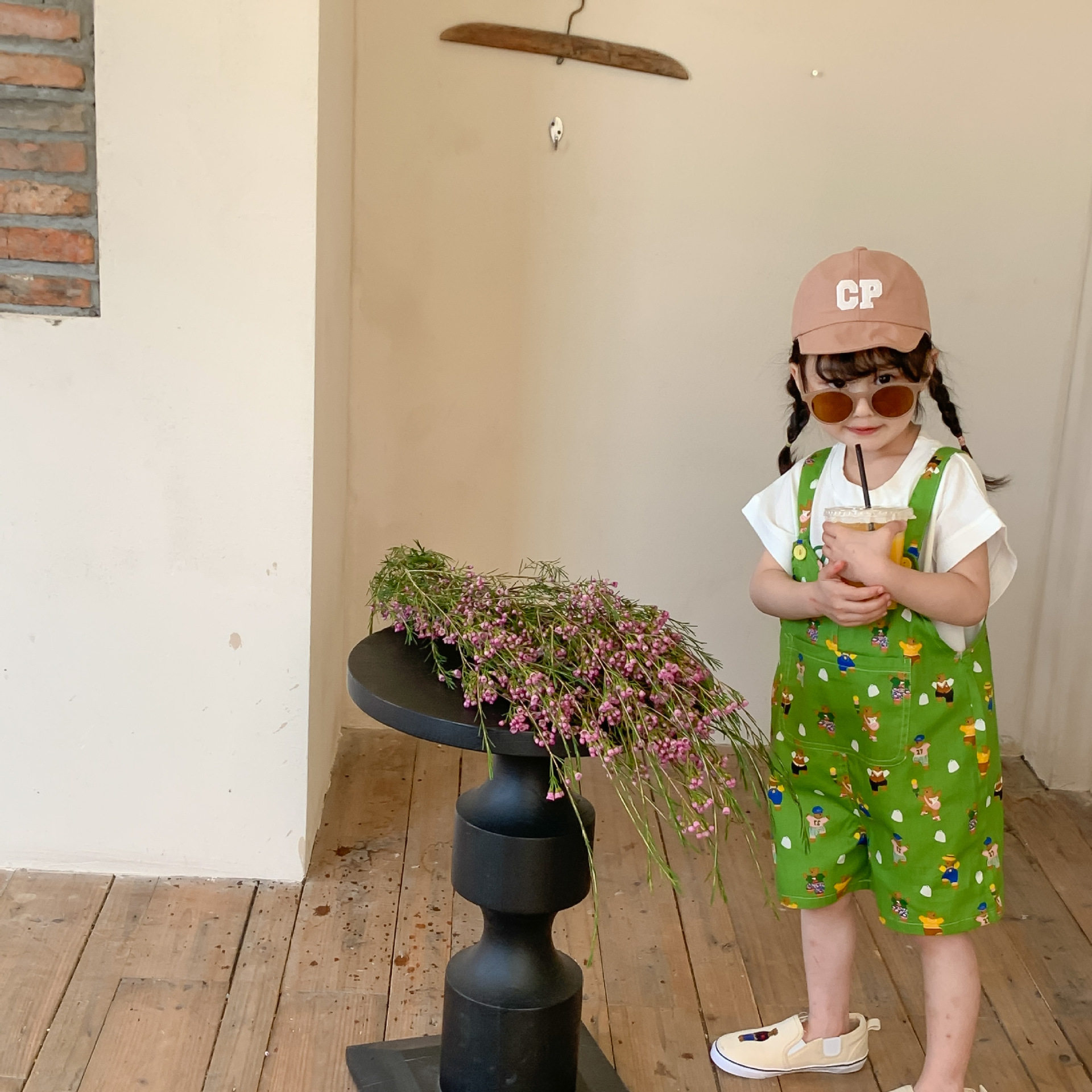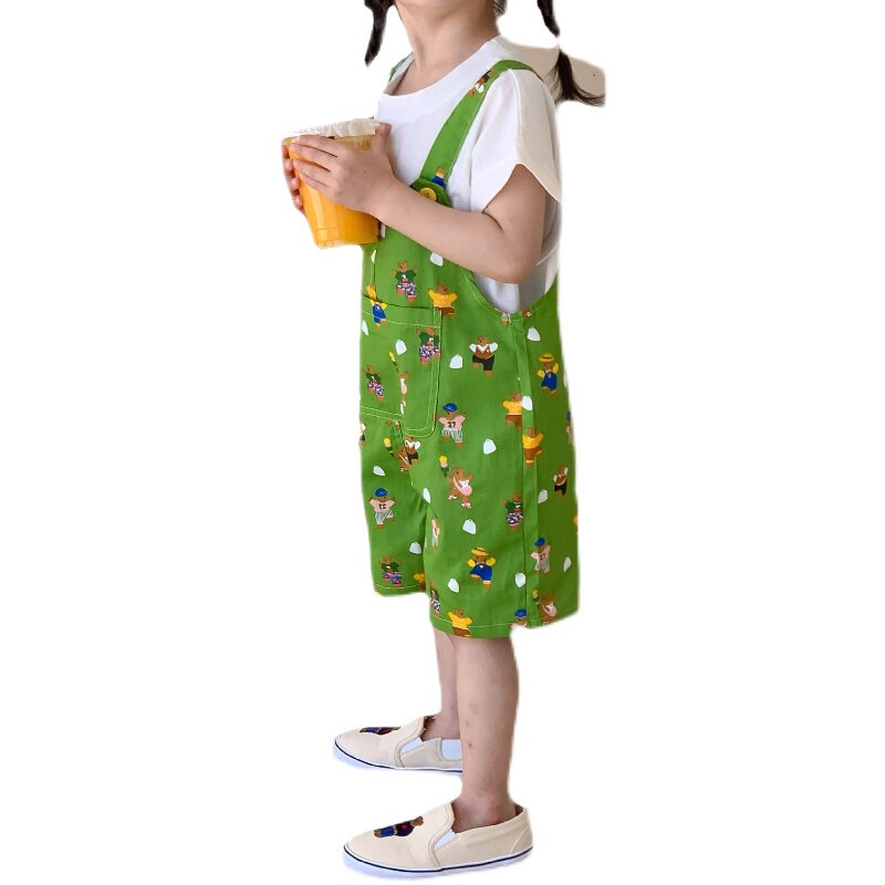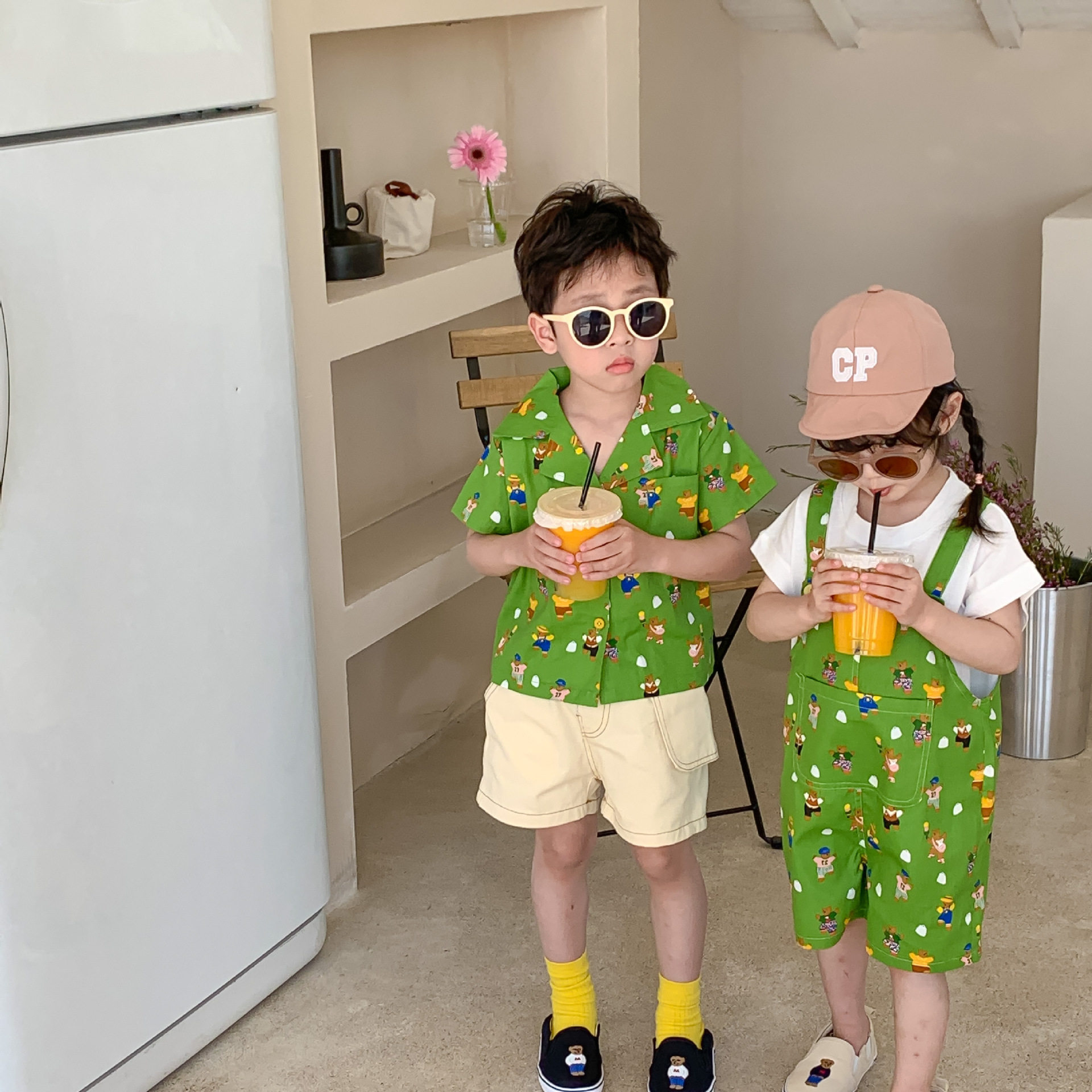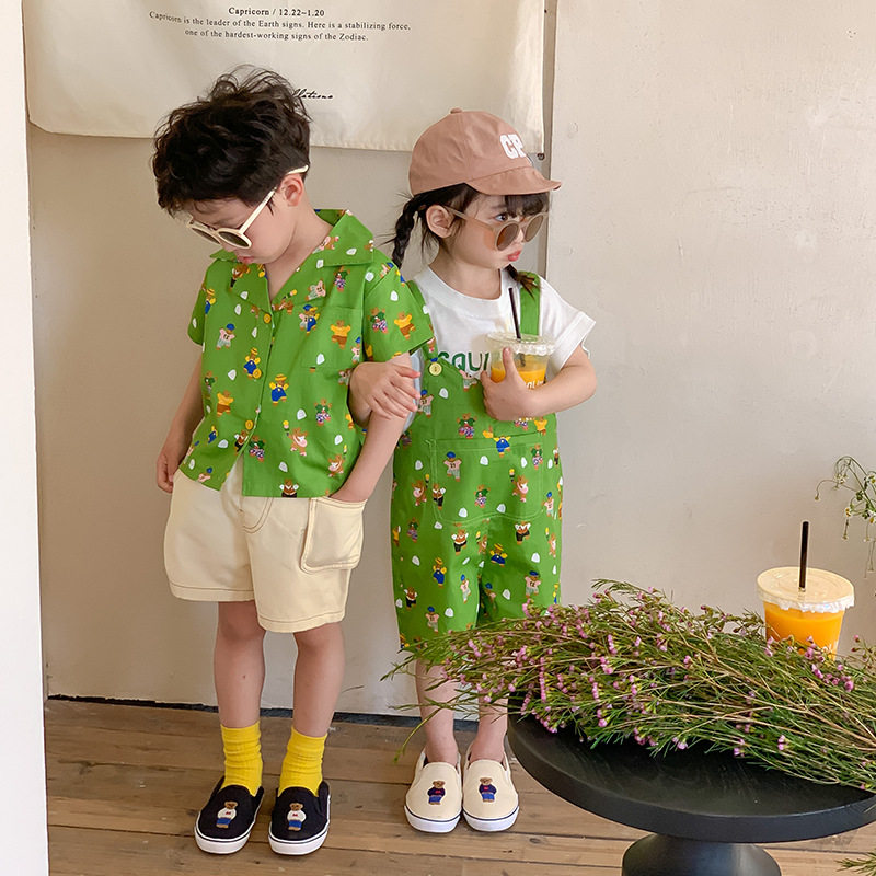 Korean children's clothes girls sister dress 2022 summer new children cartoon bear strap pants cute siblings