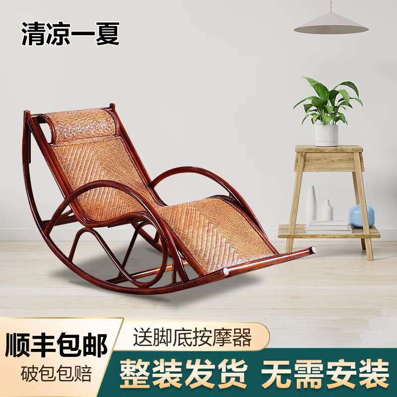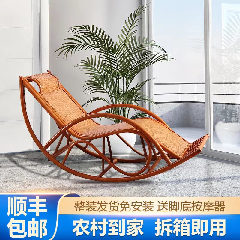 Rattan chair rocking chair reclining chair balcony home leisure real rattan rocking chair adult elderly living room study courtyard rattan weaving