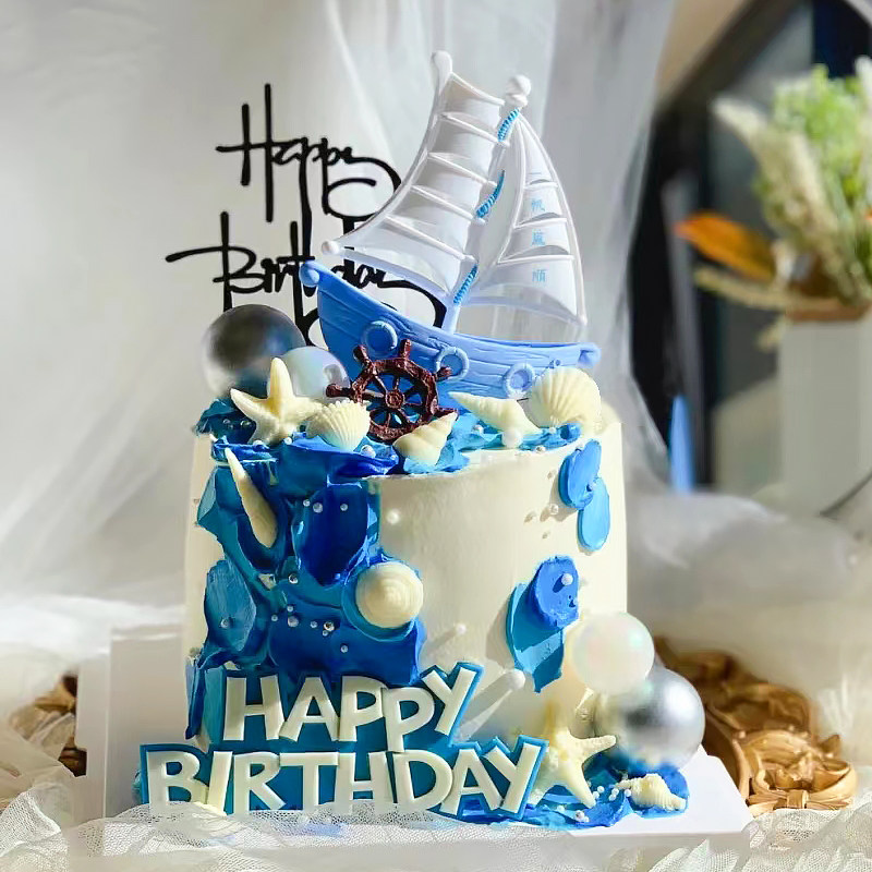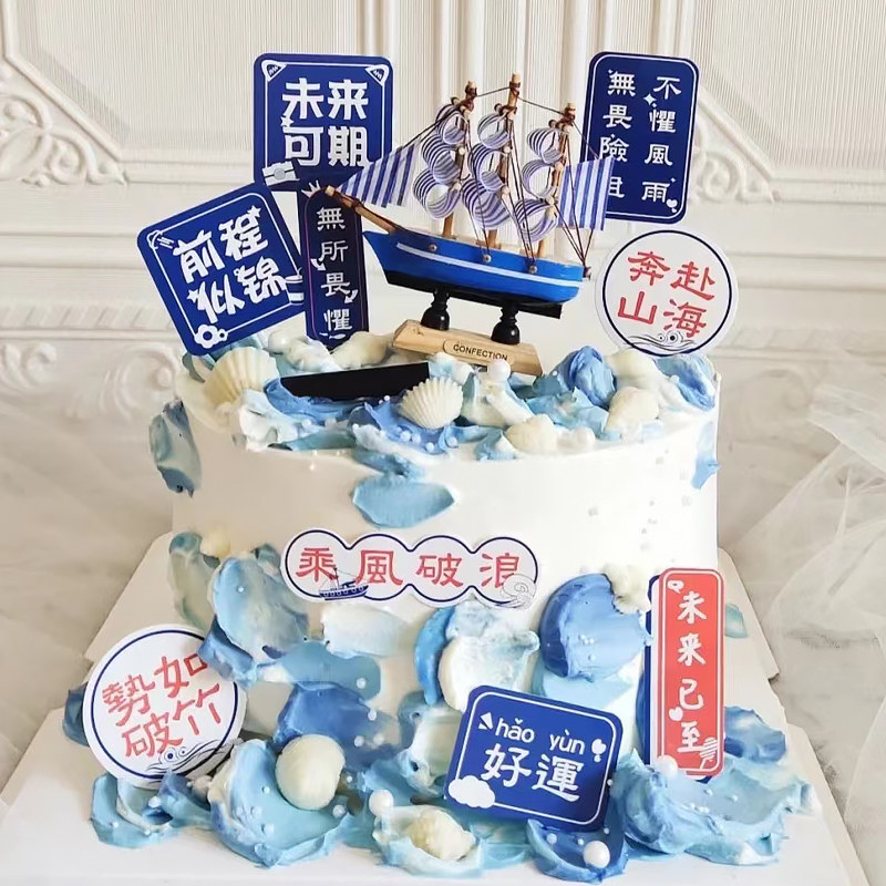 Graduation season cake decoration ornaments sailboat sailing smoothly ride the wind and waves college entrance examination party plug-in dessert table dress up