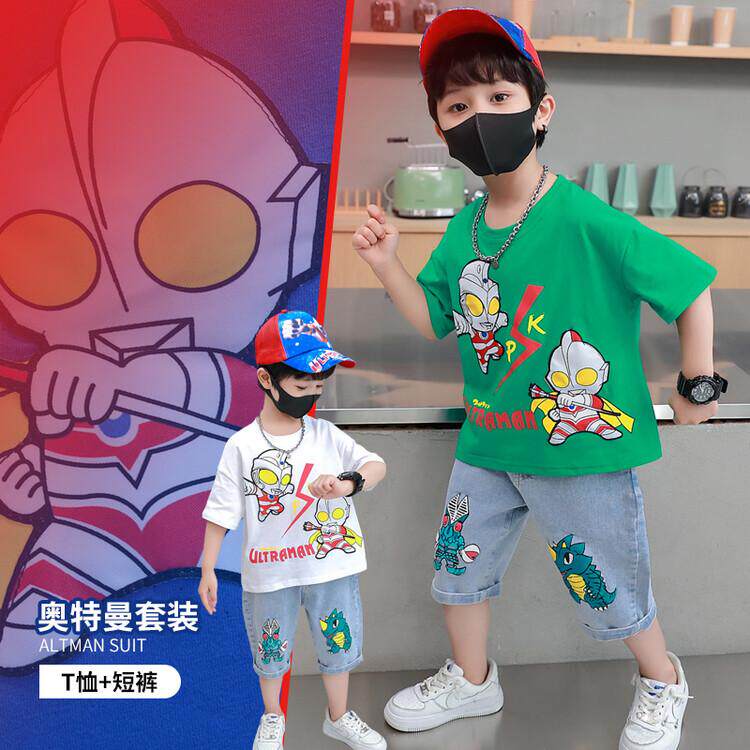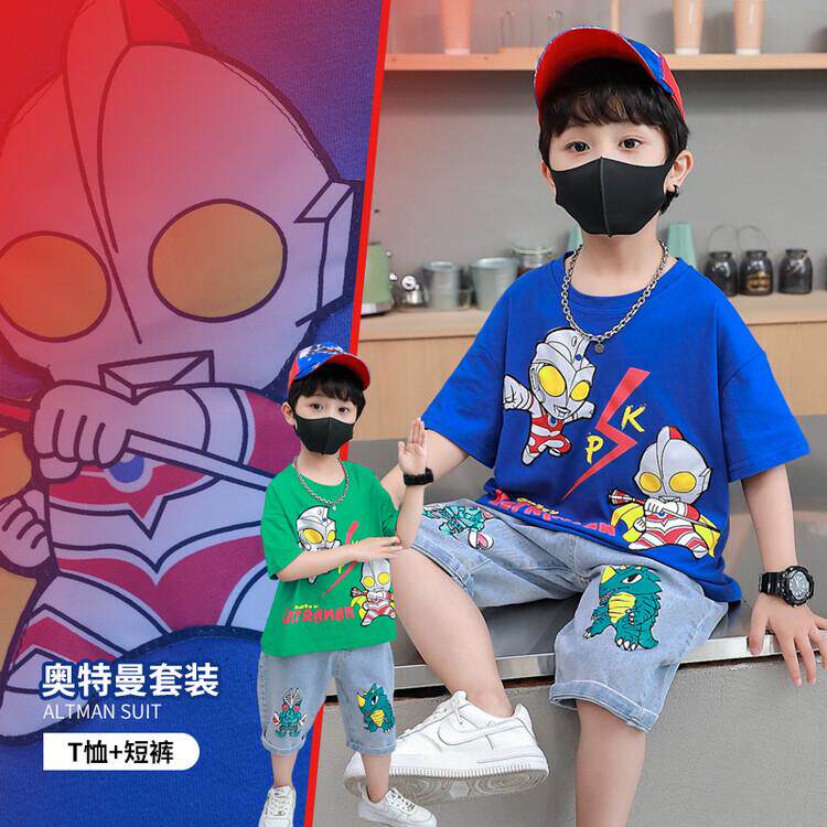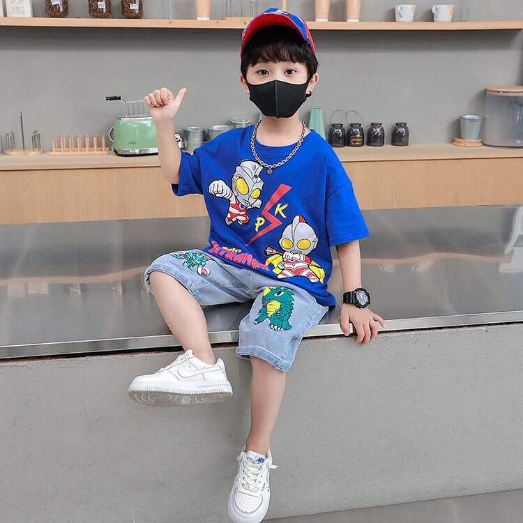 Boy Summer Personality Cartoon Character Altman Cute Casual Sleeve Short Sky Short T-shirt Summer Blue
