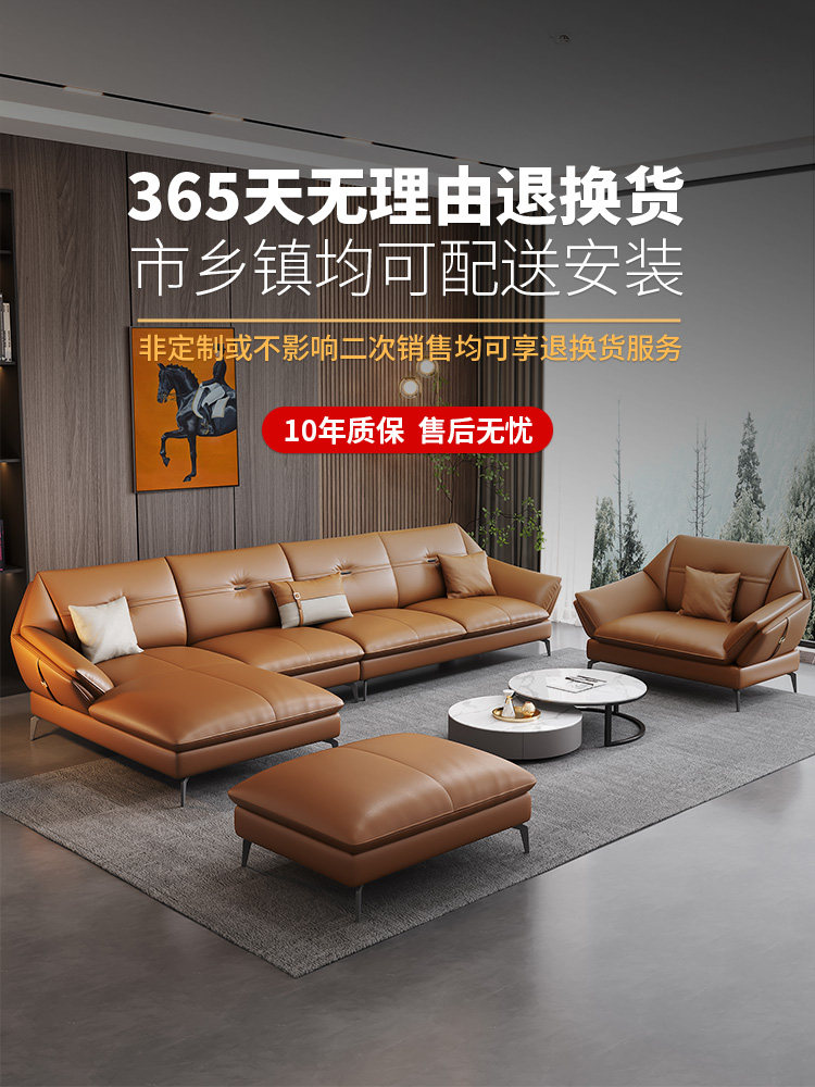 Leather sofa Italian style minimalist modern living room furniture Nordic light luxury special-shaped creative chaise head leather sofa