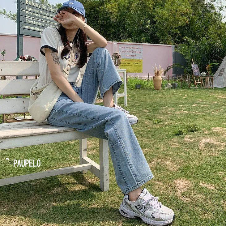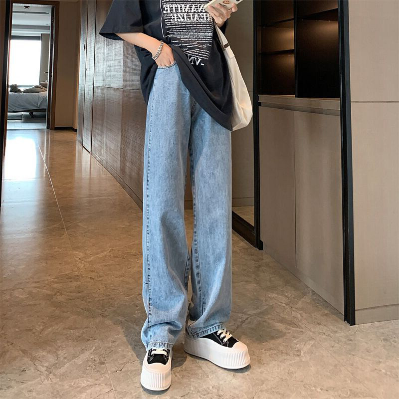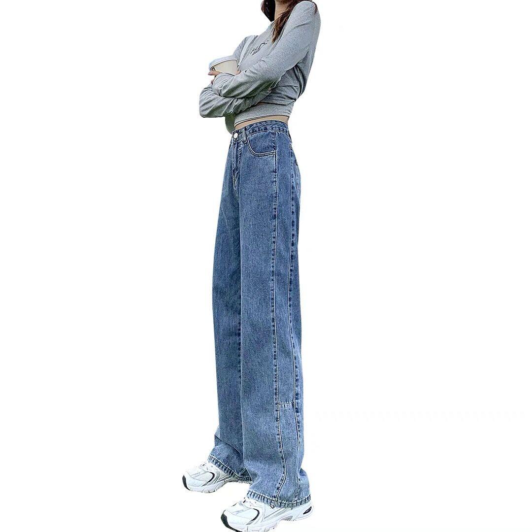 High waist jeans women's summer thin section stitching loose and thin 2022 hot style drape and thin Hyuna straight pants women