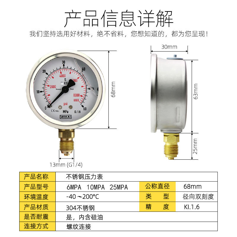 WIKA axial gauge (0 4Mpa) WIKA axial gauge (0 6Mpa) WIKA axial gauge (1Mpa) WIKA axial gauge (1 6Mpa) WIKA axial gauge (2 5M