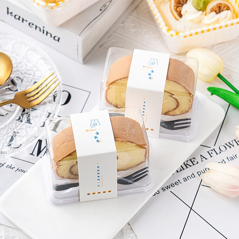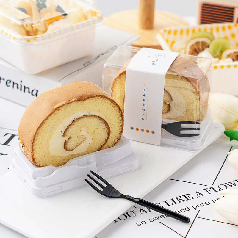 50 Loaded Cake Rolls Packing Boxes for Cardboard Fork Swiss Rolls Tiger Leather Rolls Refreshments Transparent Plastic Packaging Boxes