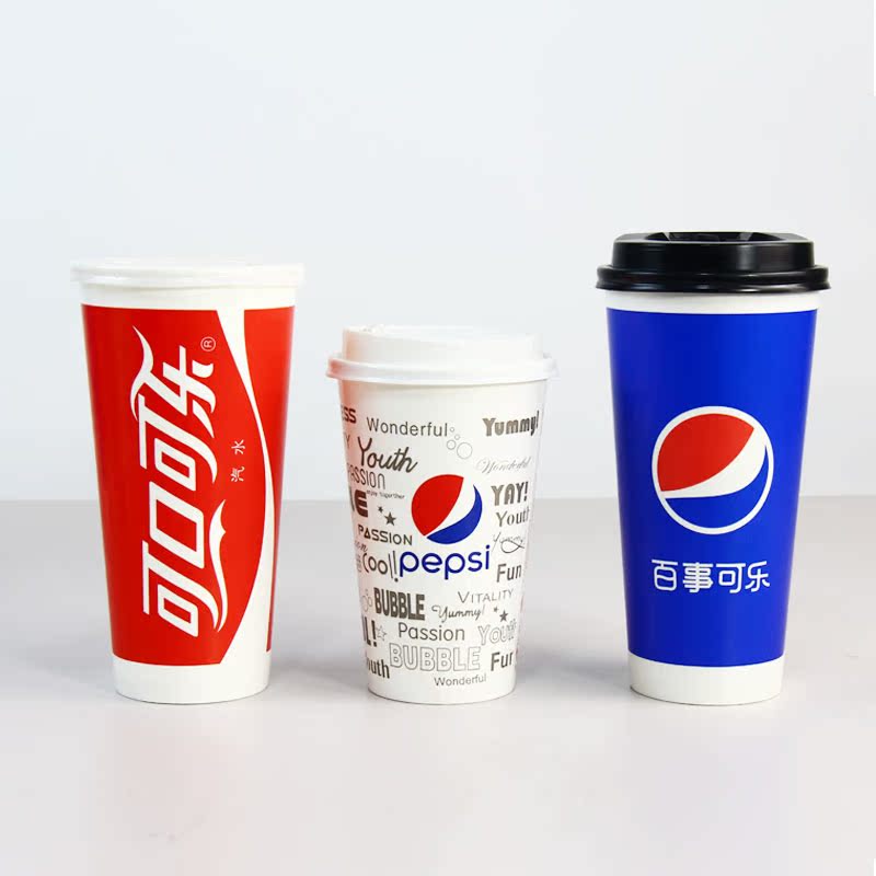 Disposable cola cup paper cup thickened double film with lid Pepsi Coca-Cola cold drink cup 1000 packs