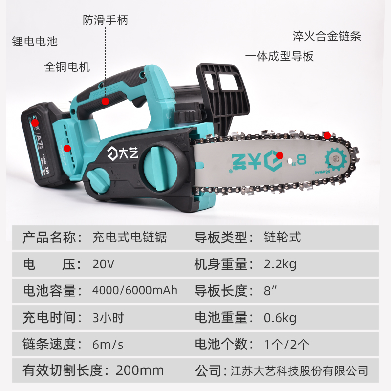 Taiyi Lithium electric chainsaw 8 inch A7 charged chainsaw lithium - power brushless high power outdoor cutting machine