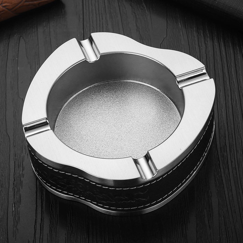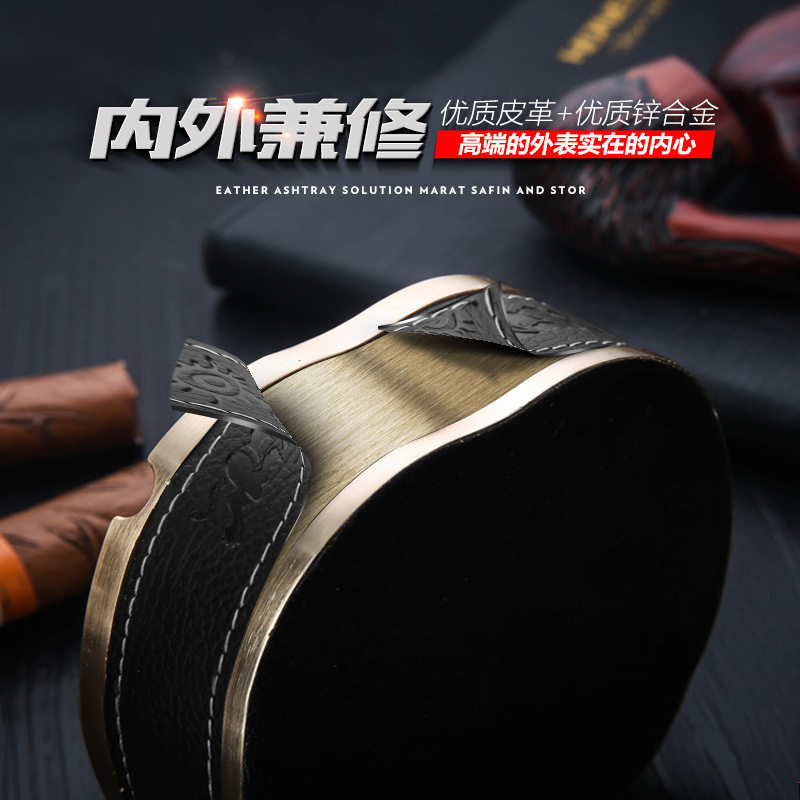 Creative personality metal ashtray fashion trend leather ashtray box high-end home living room festival gift customization