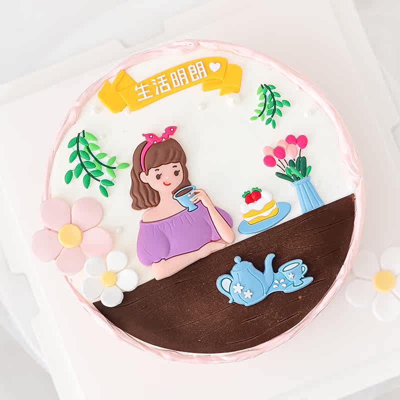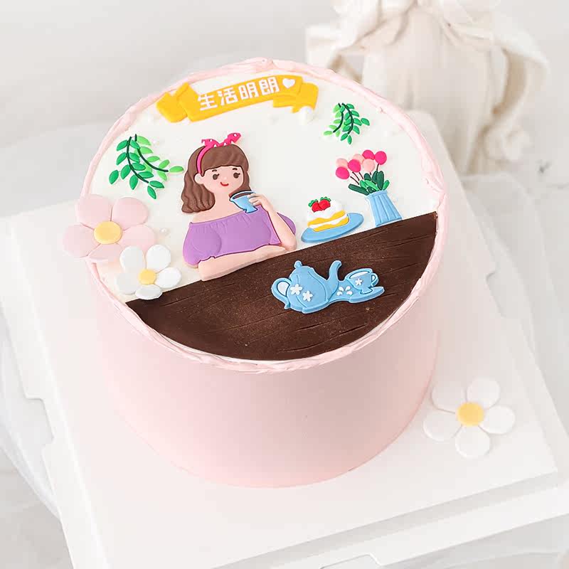 Net Red Ins Wind Goddess Birthday Cake Decoration Soft Glue Life Clear Swing to drink the afternoon tea Guido Lady Plugin