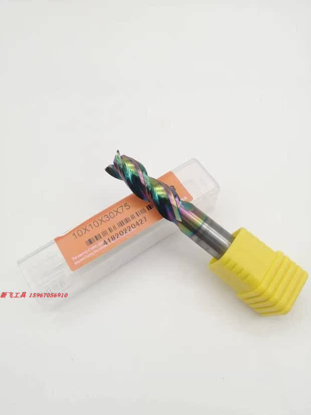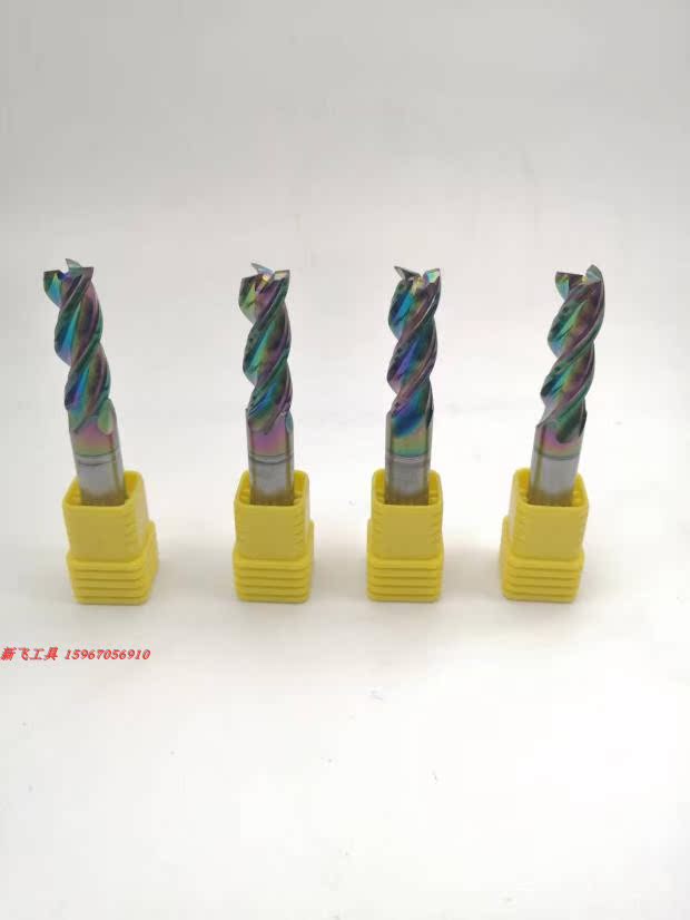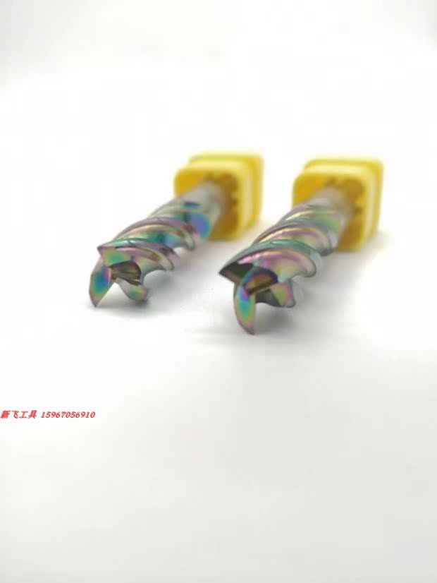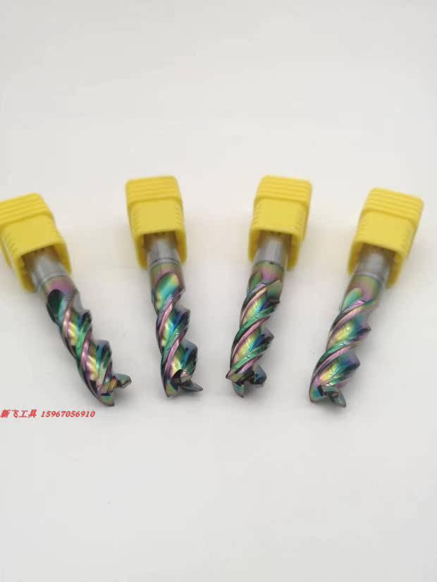 Imported high-efficiency aluminum milling cutter U-groove fast-feed high-gloss alloy DLC colorful coated tungsten steel 3-blade lengthened blade