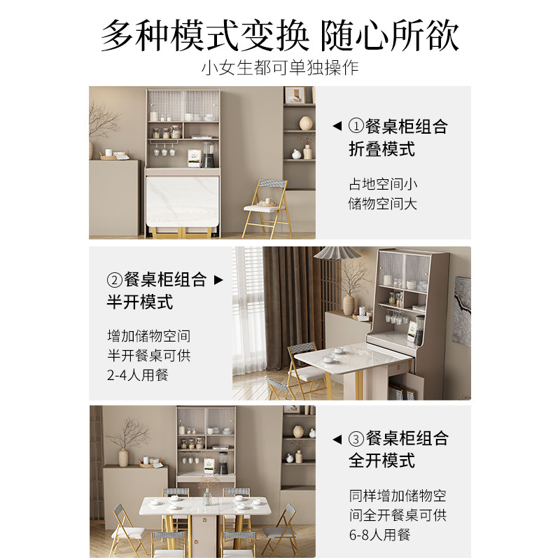 Light luxury slate dining cabinet folding dining table one small apartment household retractable multi-functional dining table and chair combination