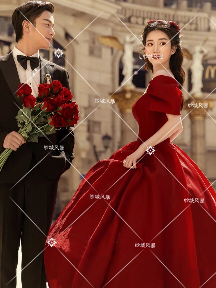 Photo studio theme clothing red puff sleeve wedding photography location travel photography street photography couple photo tutu skirt dress