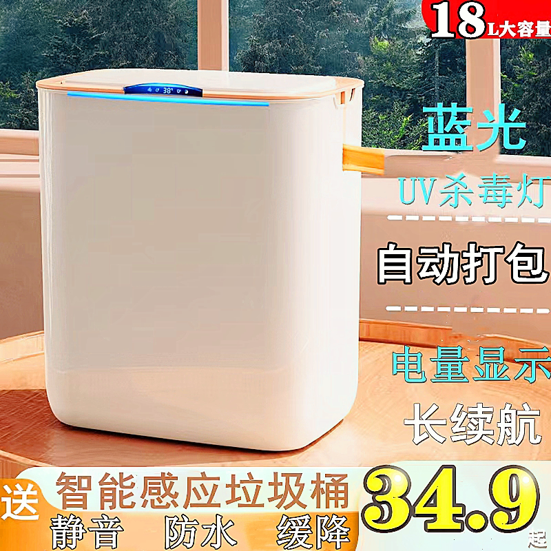 Intelligent sensor sanitary trash can large size automatic packing and bag changing home with cover living room light luxury millet white paper Lou