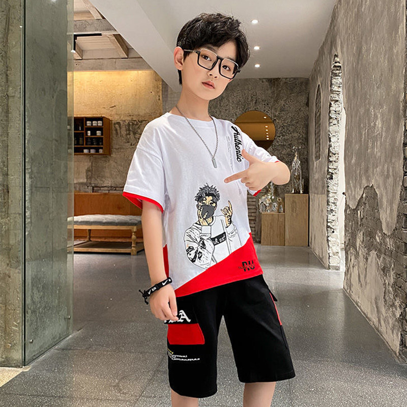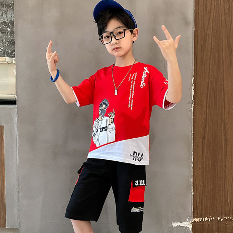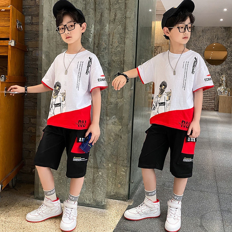 Summer short-sleeved suit boy's clothing Korean version of the trendy fashion children's suit in the big children's T-shirt five-point pants two-piece set