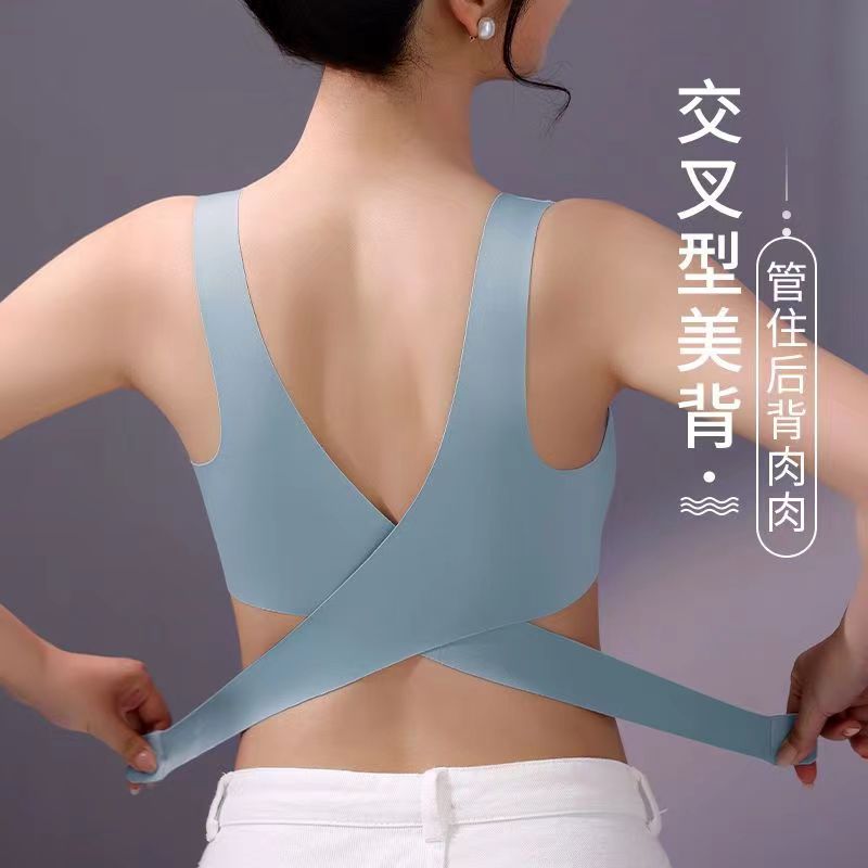 Seamless ice silk sports underwear women gather no steel ring sexy breathable yoga beauty back support anti-sagging bra summer
