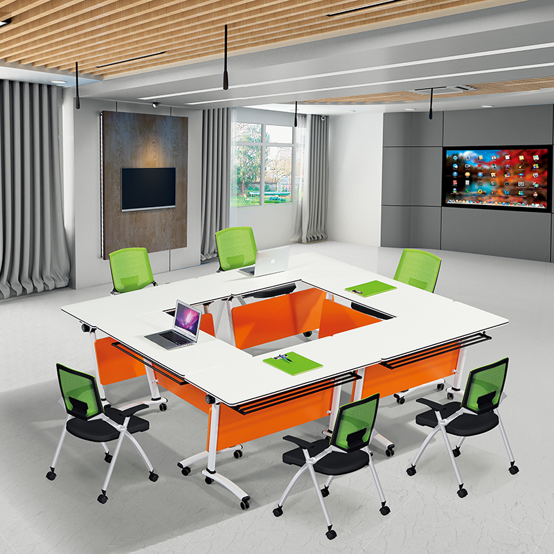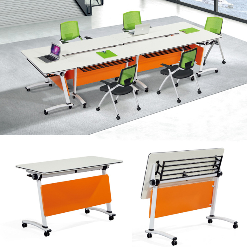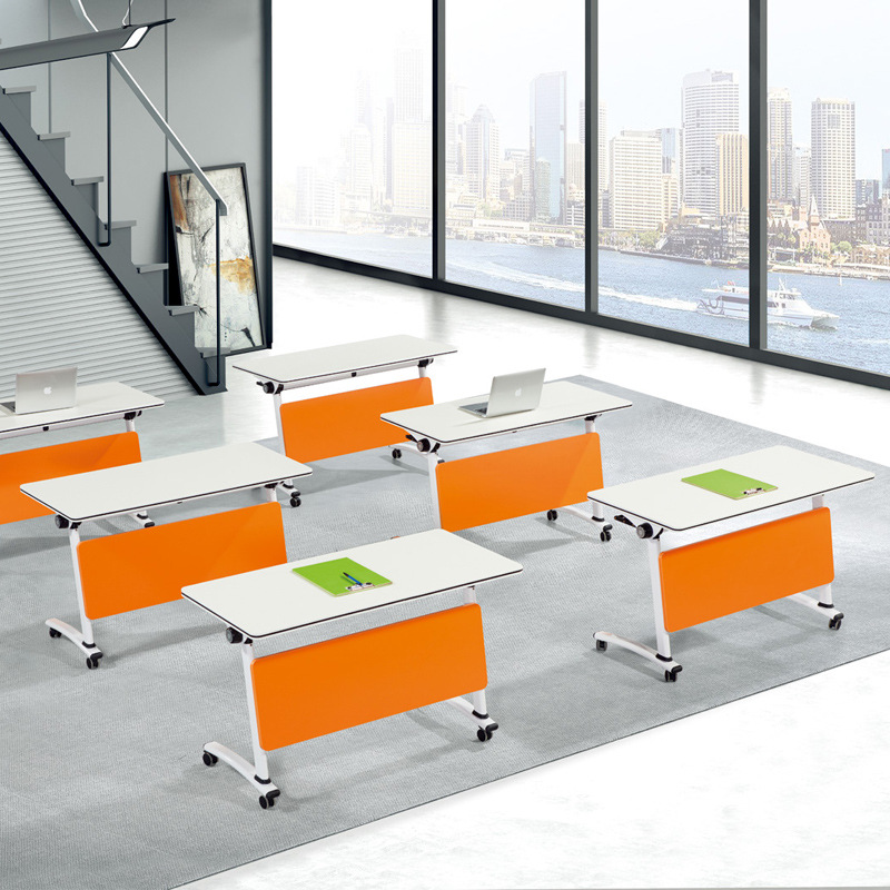 Training tables and chairs combined double student desks foldable moving splicing fan table with wheel-turned tables