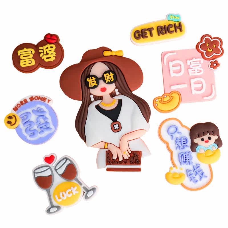 Milky white soft glue rich woman 7-piece set high-end style rich woman 1 drinking drink rich woman 1 lucky cat soft glue 4-piece set soft glue 1 night storm money letter 1 pack of money letter glasses bronzing with money letter home