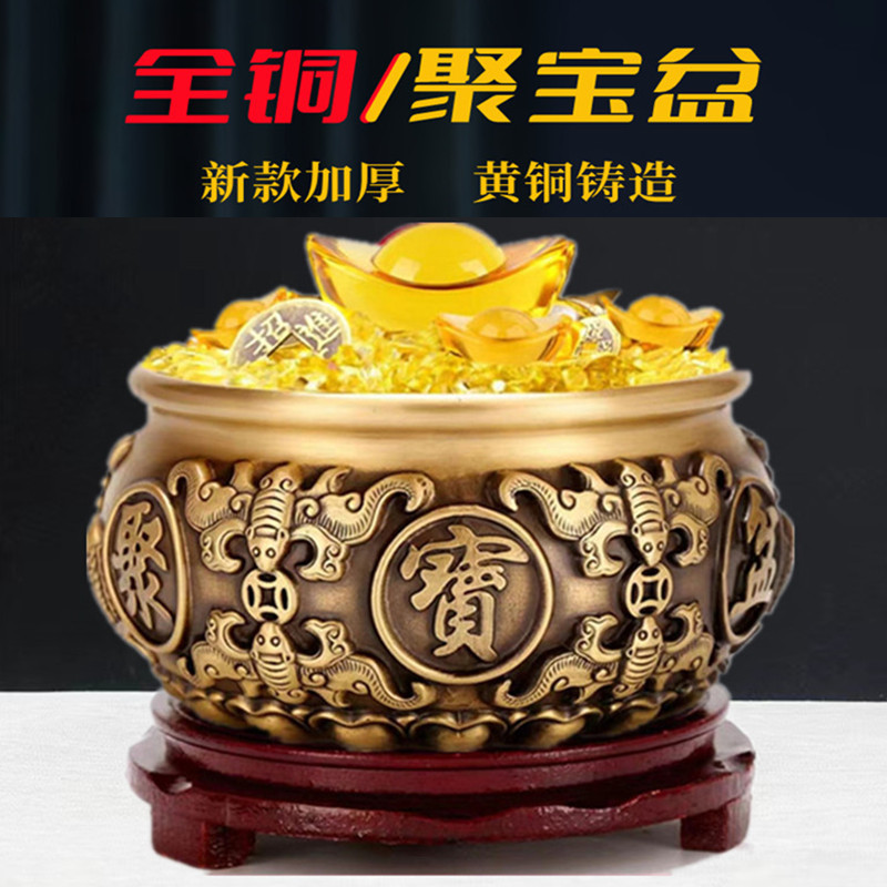 Pure copper polyppot basin swing piece Merchants household solid full copper home living room Xuanguan big deposit money pot copper cylinder opening-Taobao