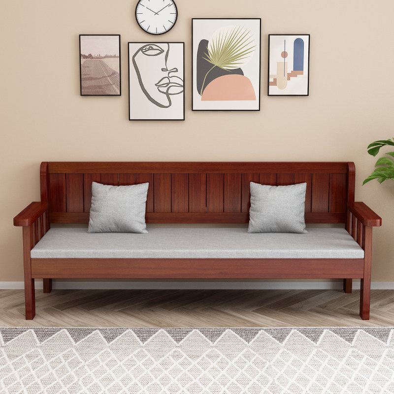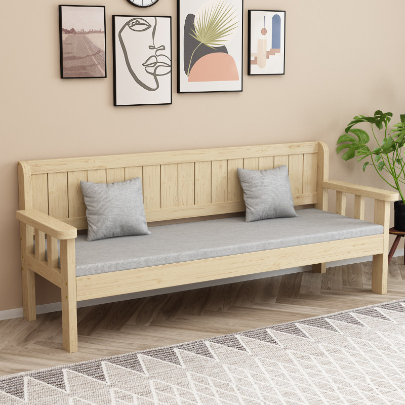 Solid wood sofa combination new Chinese-style living room simple modern three-person small apartment balcony chair double backrest long chair