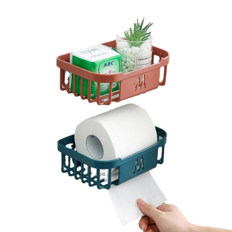 Toilet-free perforated hollowed-out shelve multipurpose square debris containing containing box plastic paper towel box hanging wall style-Taobao