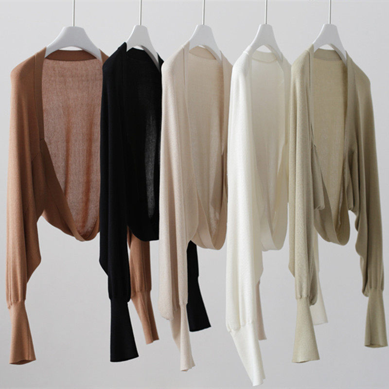 Ice wire sun knitting sweater thin female shawl with skirt loose short shoulder hanging strap outside shirt