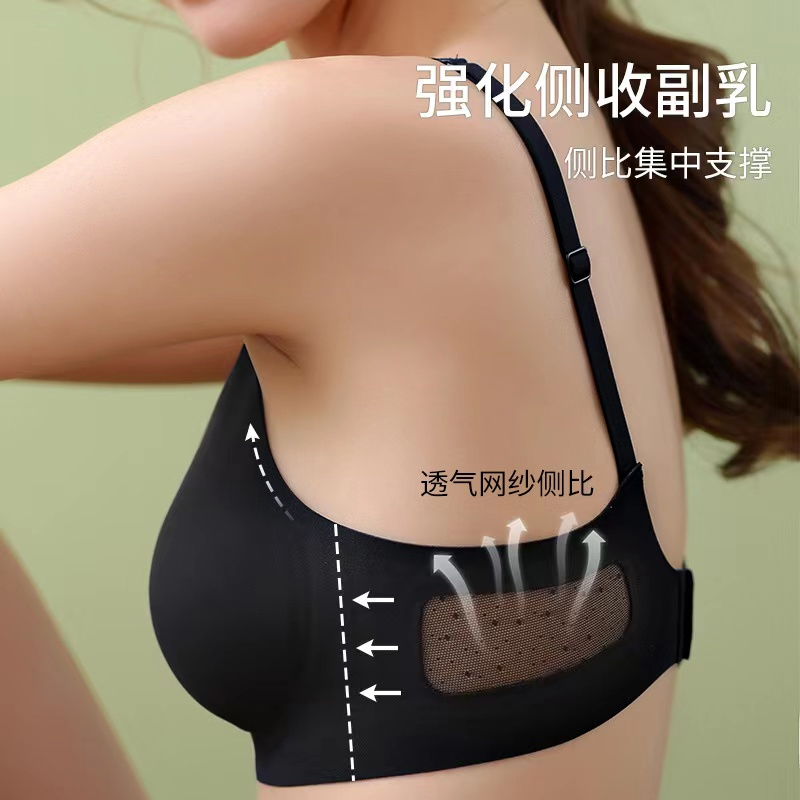 Seamless small chest gathered underwear female no steel ring one-piece anti-sagging bra summer sexy deep V pure desire bra