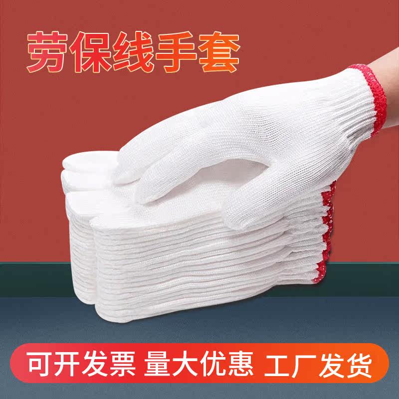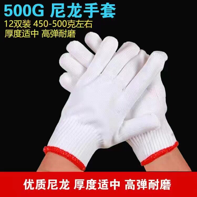 Gloves labor insurance gloves wear-resistant water-oil-resistant all-plastic gloves work thickened cotton thread nylon gloves construction site labor male