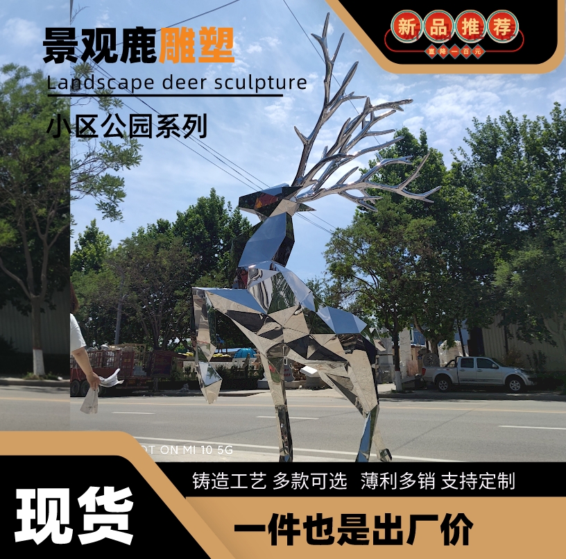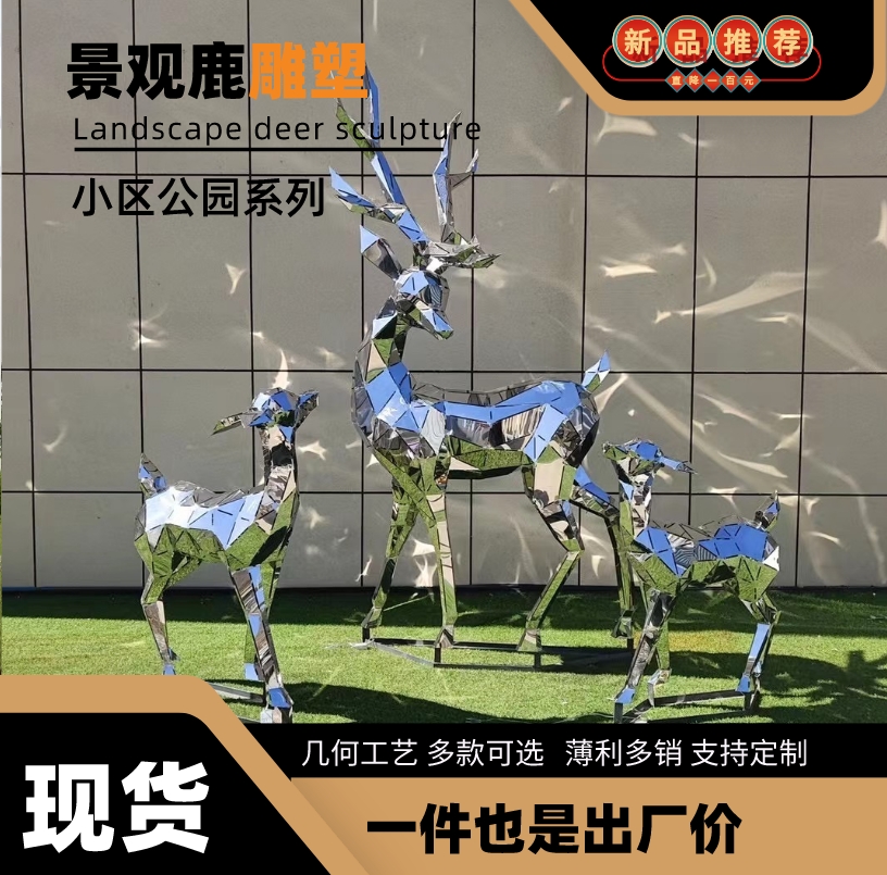 Stainless Steel Deer Sculptures Customised Mirror Hollowed-out Animal Garden Forest Landscape small Pendulum Pieces Metal Geometric Sculptures Outdoor-Taobao