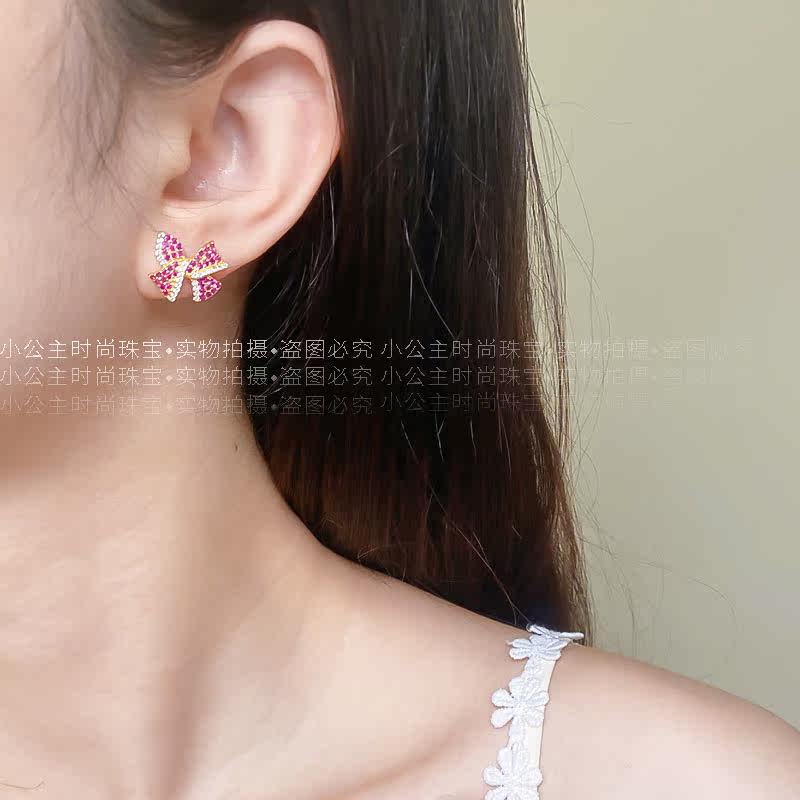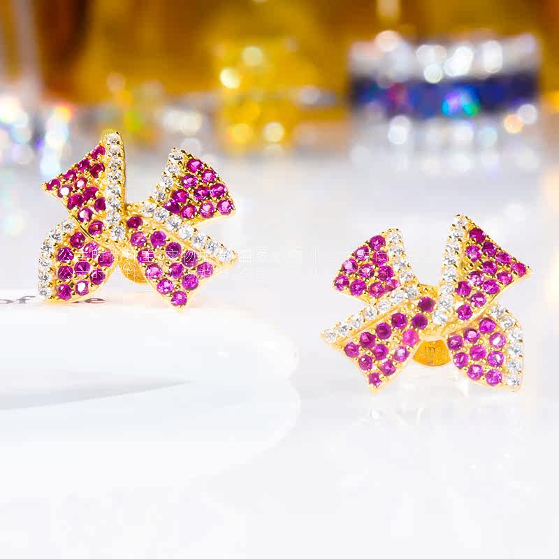 18k gold mosanstone Colour butterfly ear nail fashion small crowddesign with sparkling gas light and luxurious to the ear
