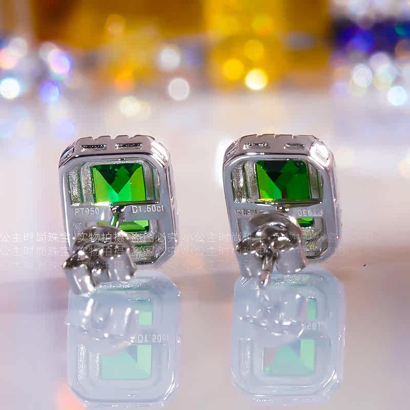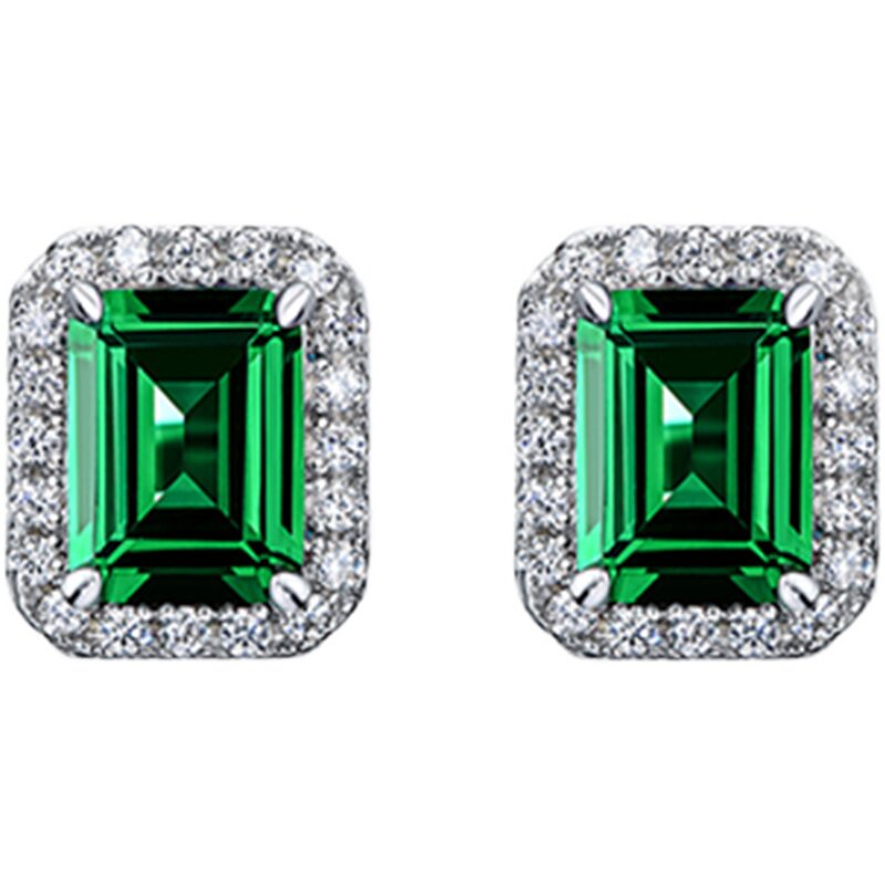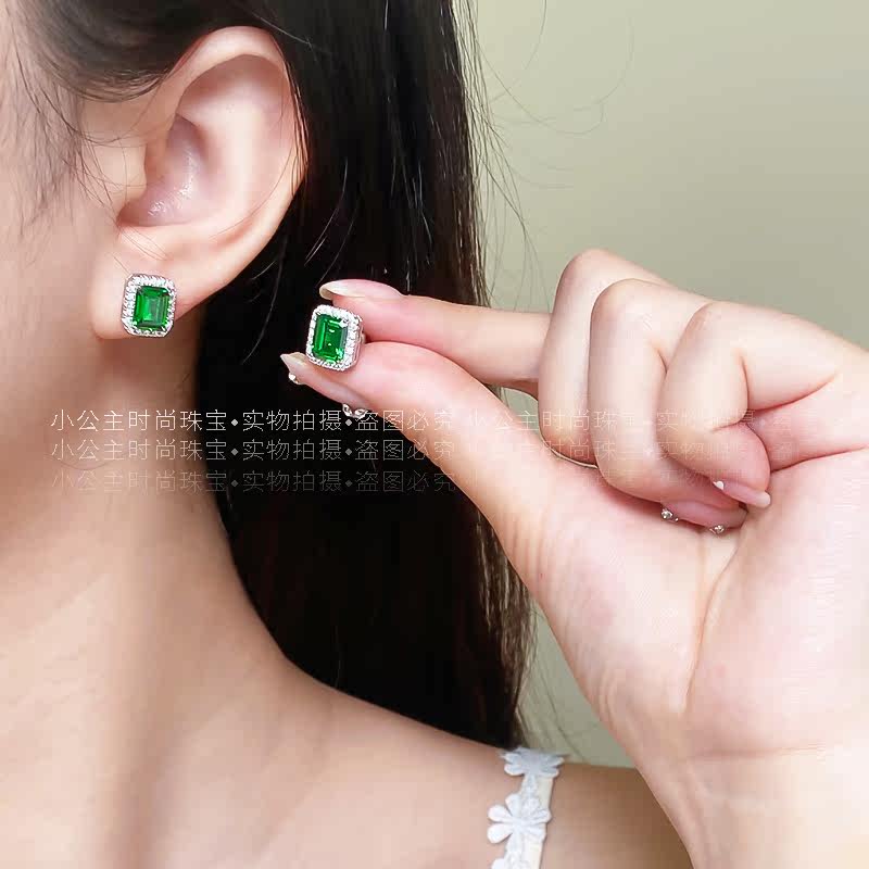18k Platinum Group Inlaid Ancestral mother green retro rectangular earrings female platinum inlaid square Clarins earrings