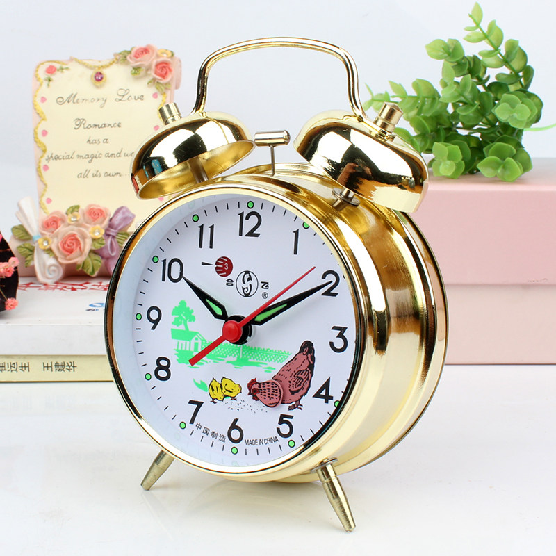 Metal old clockwork mechanical alarm clock big bell metal core chicken eats rice nostalgia vintage bells bell horse hooch table-Taobao
