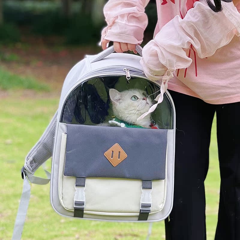 Cat Bag Double Shoulder Out of Portable Cat Backpack Pet School Bag Large Capacity Canvas Breathable Summer Kitty Carry Supplies