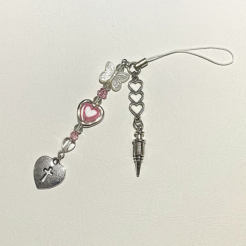 (Handmade in 15 days) Love butterfly lanyard mobile phone chain pendant cute decoration pink niche girl heart