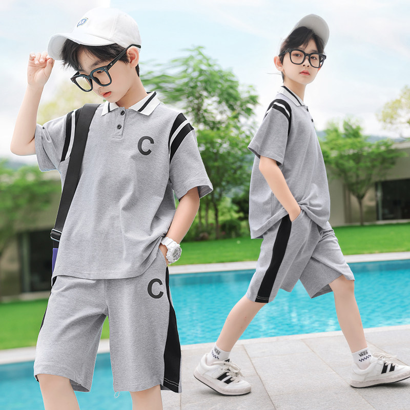 Boy Clothing Boy Suit Polo Shirt Short Sleeve Summer 2022 New Big Boy Summer Handsome Air Casual Dress Child Tide