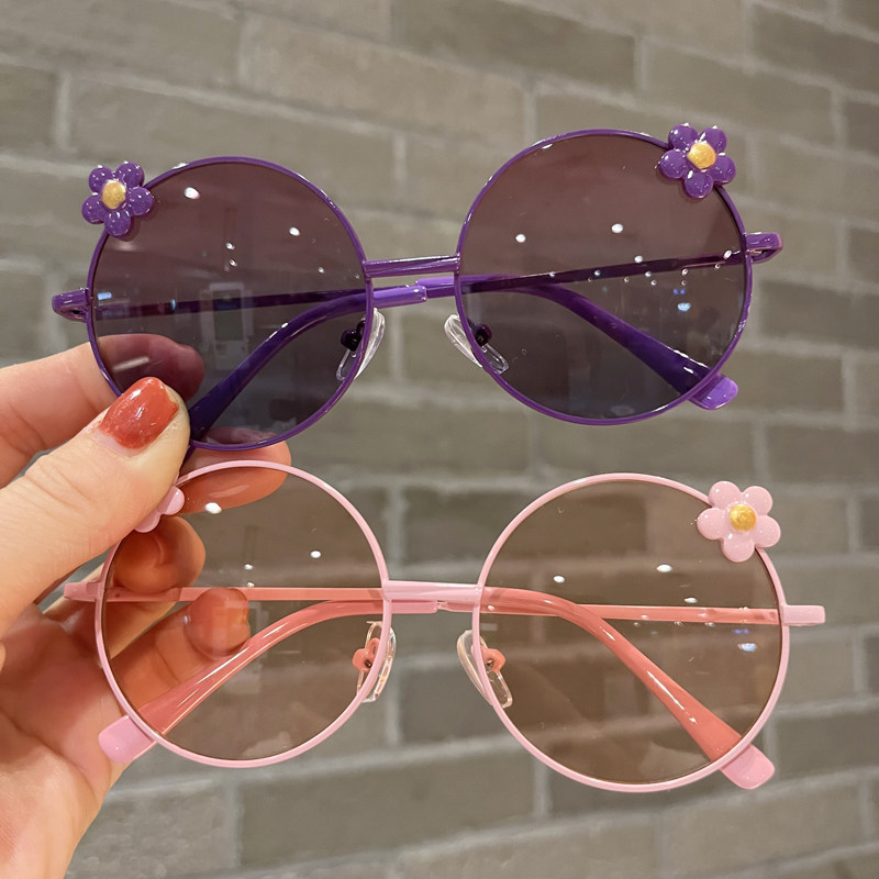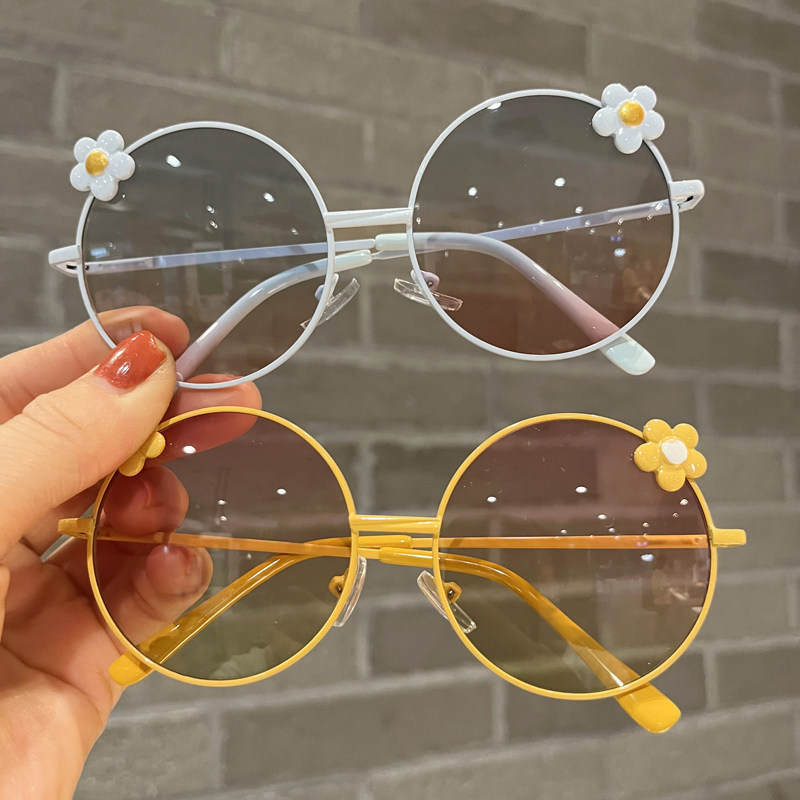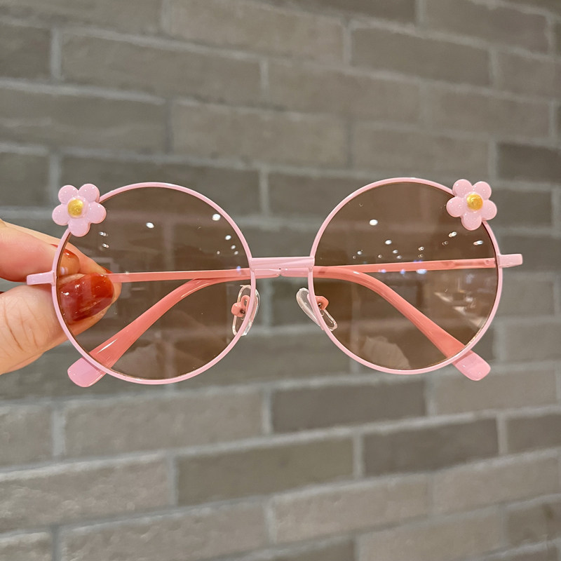 Girl Sunglasses Fashion Metal Frame Ocean Gas Female Baby Sunglasses Cute Flowers Children Glasses Walk Show Matching Tide-Taobao