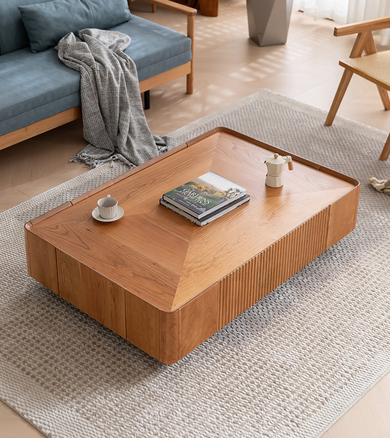 Italian minimalist cherry wood solid wood square coffee table storage living room creative drawer tea table Nordic simple square a few cabinets