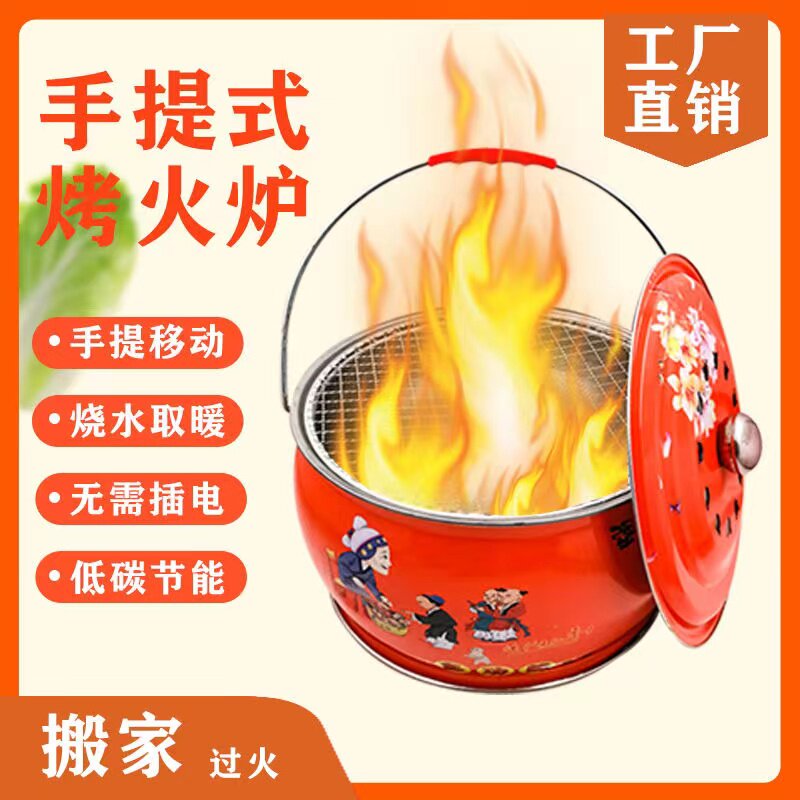 Charcoal grilled stove home brazier new home housewarming into the house portable stove is convenient to move the grilled brazier to fry vegetables and barbecue basin