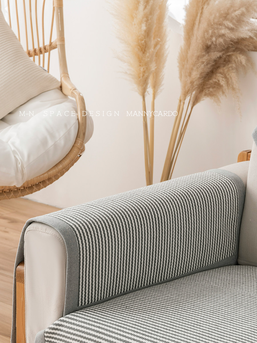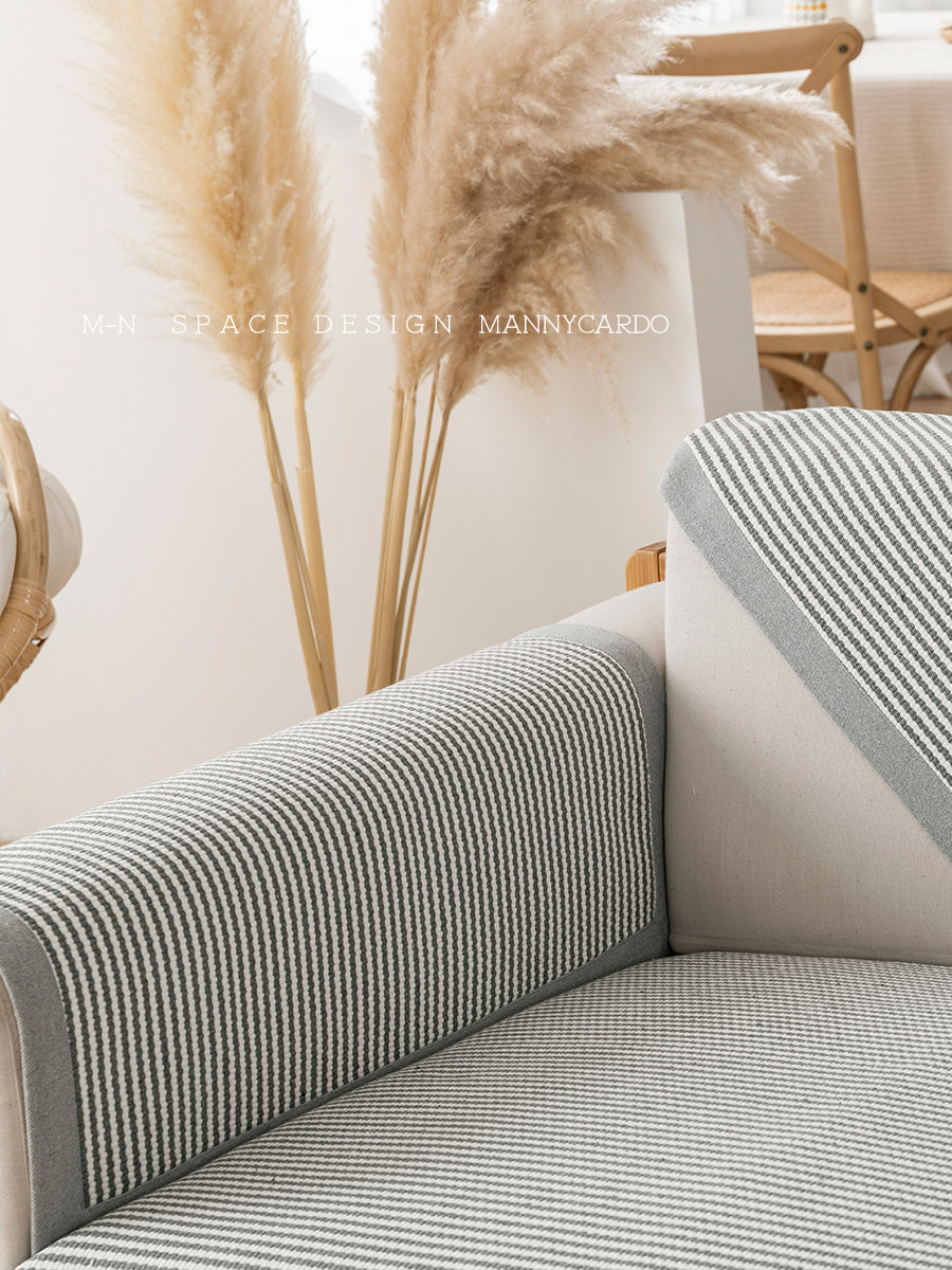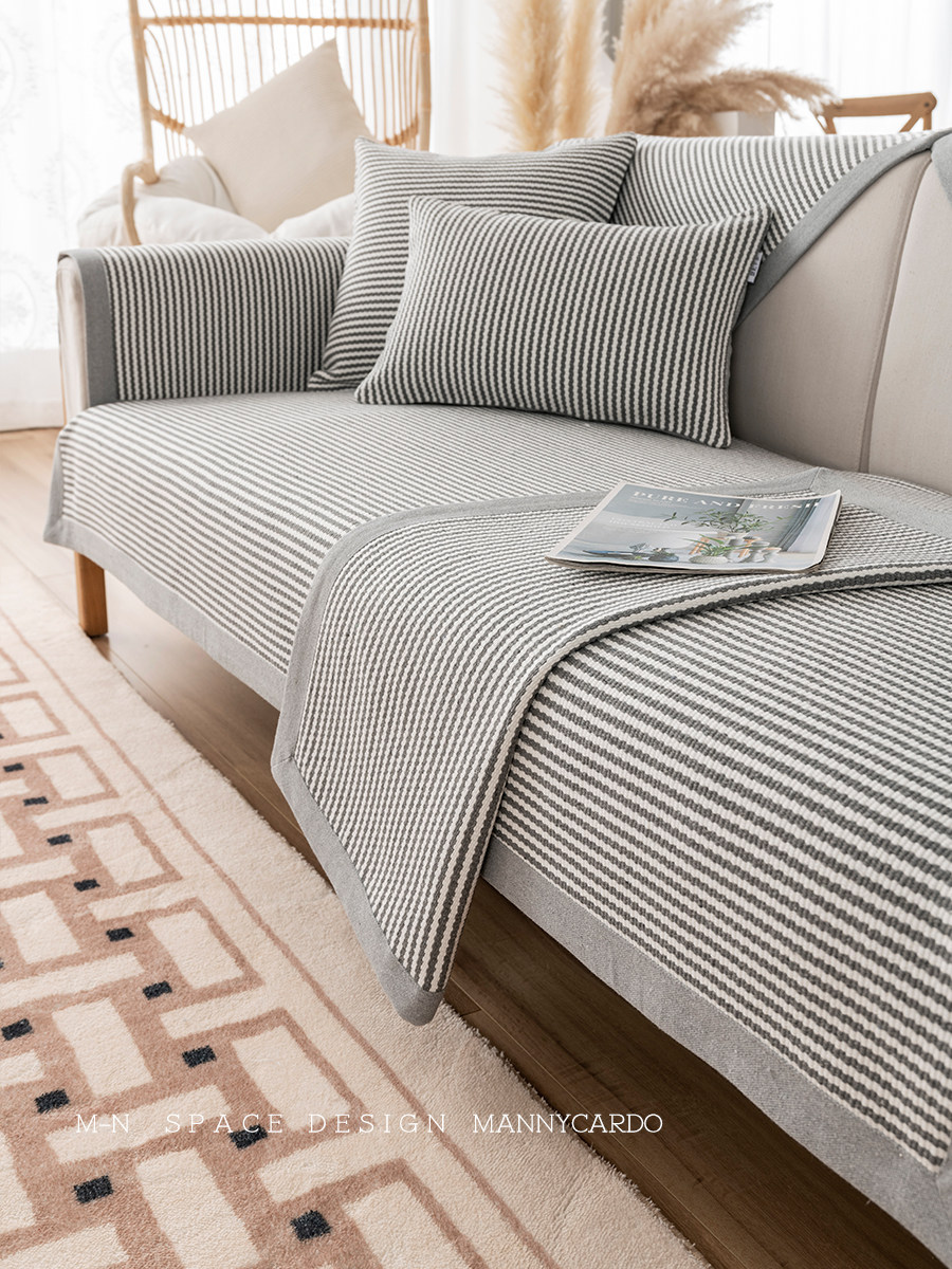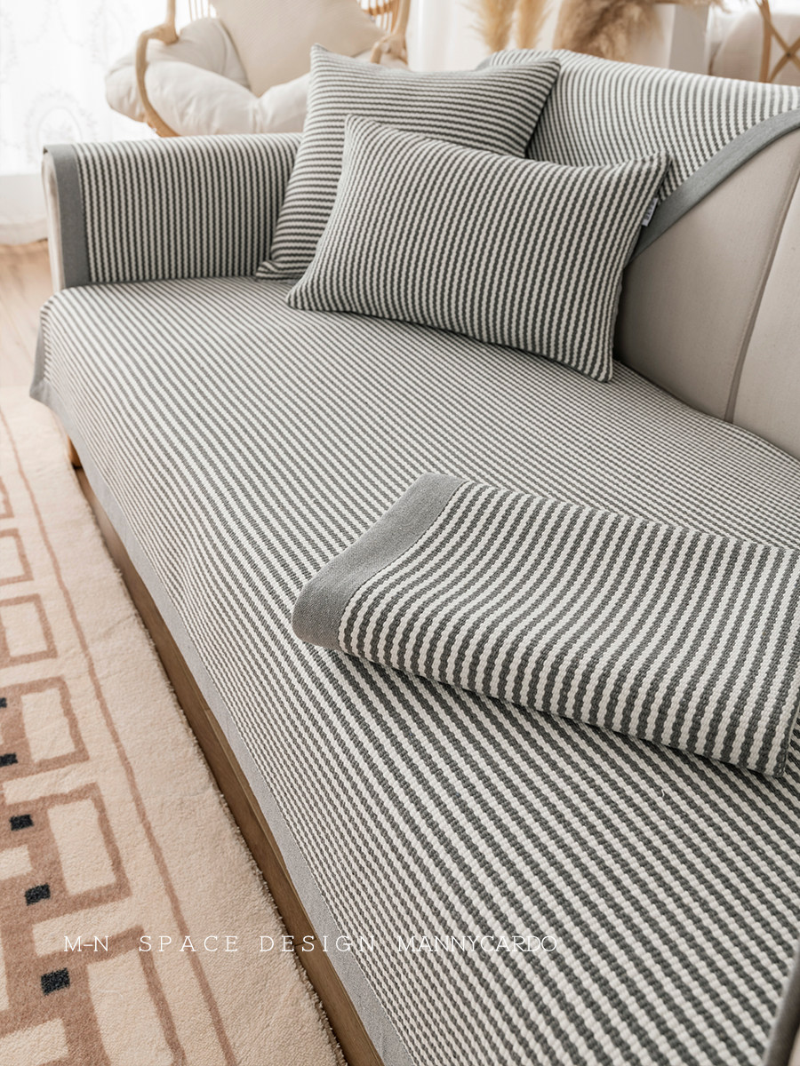 Four seasons general gray and white striped cotton yarn blend thickened non-slip modern minimalist sofa cover towel combination sofa cushion