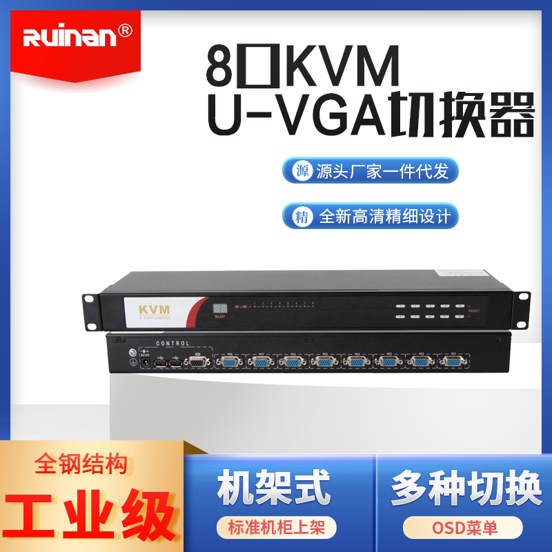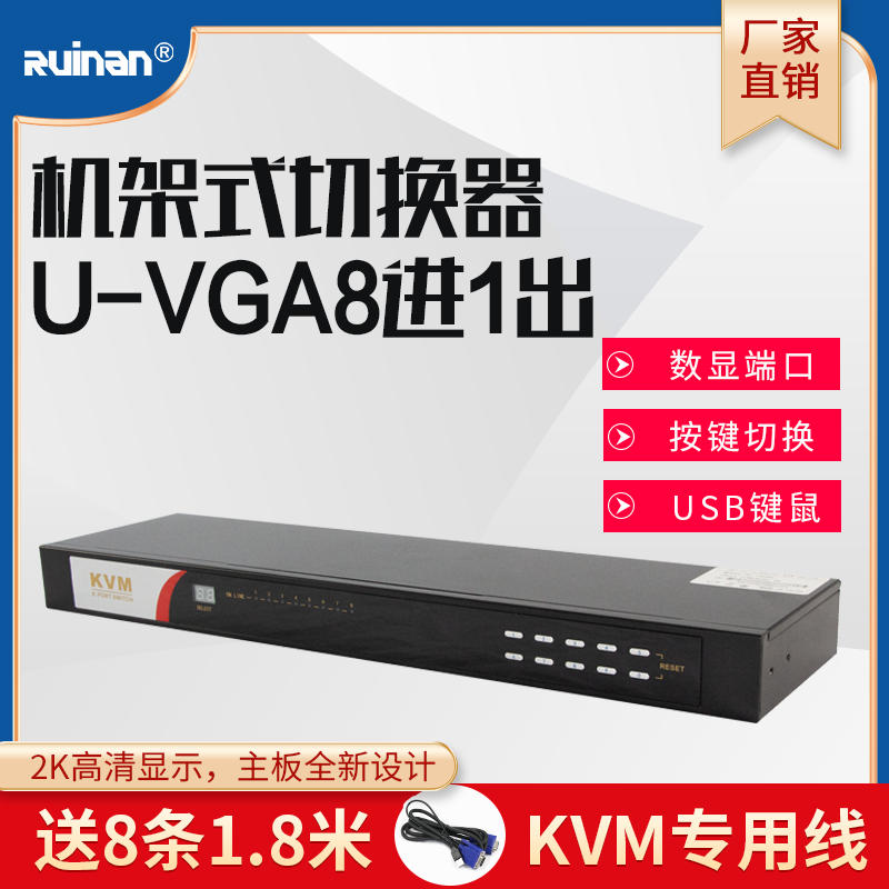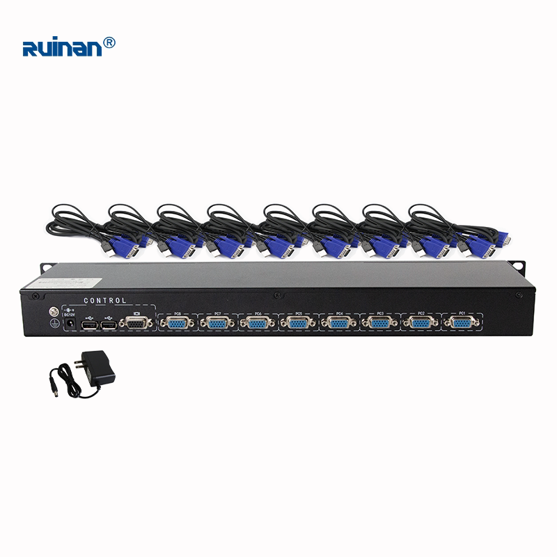 RUINAN RUINAN RVM8 Rack KVM8 Into 1 out USBVGA Port Shared Keymouse display 1U High Switch