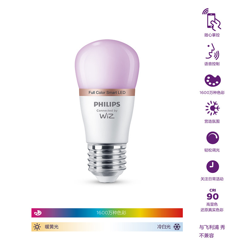 Philips led light bulb energy-saving lamp E27 screw mouth home color light atmosphere electric bulb ultra bright sky cat genie wise control -Taobao