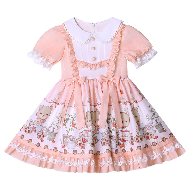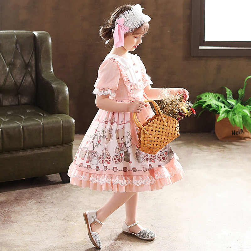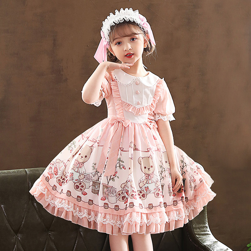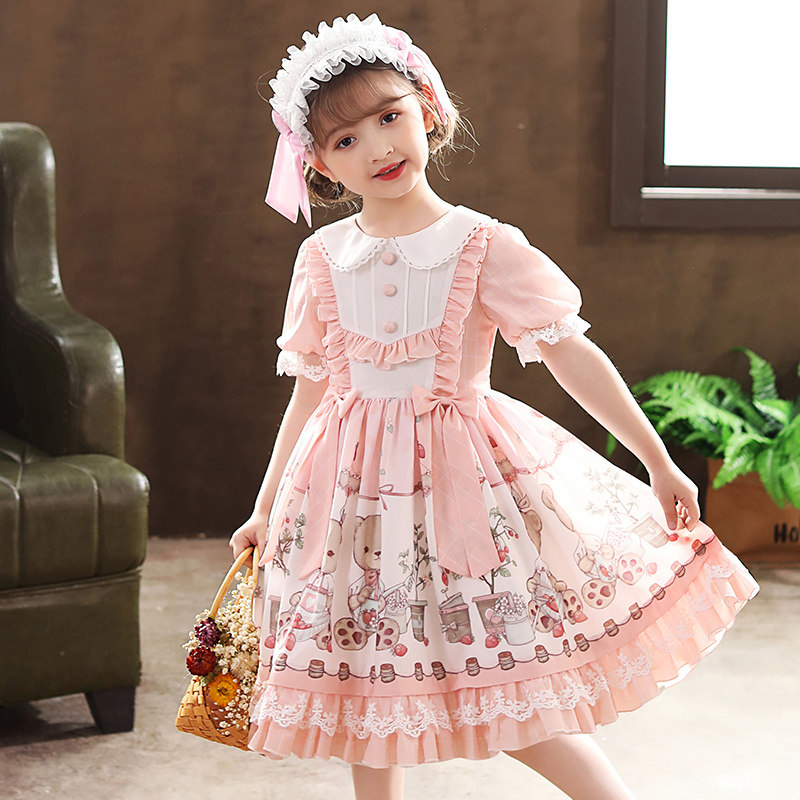 Children's lolita girl princess dress new female treasure summer short-sleeved lolita skirt shrimp pink children's dress