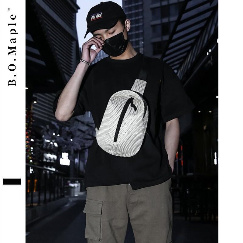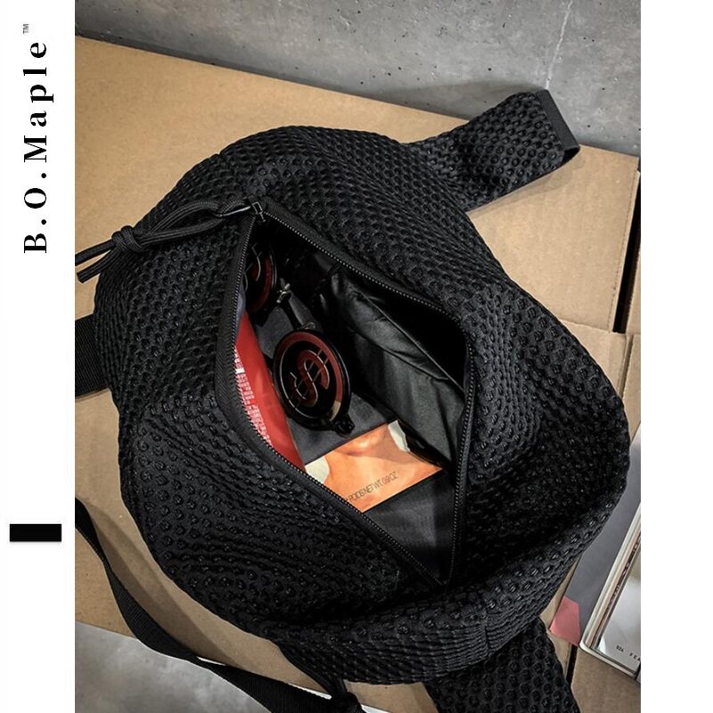 BOMaple China Wind Men's Chest Bag Slanted Satchel Personality Grid Purse Oxford Spun Canvas Single Shoulder Bag