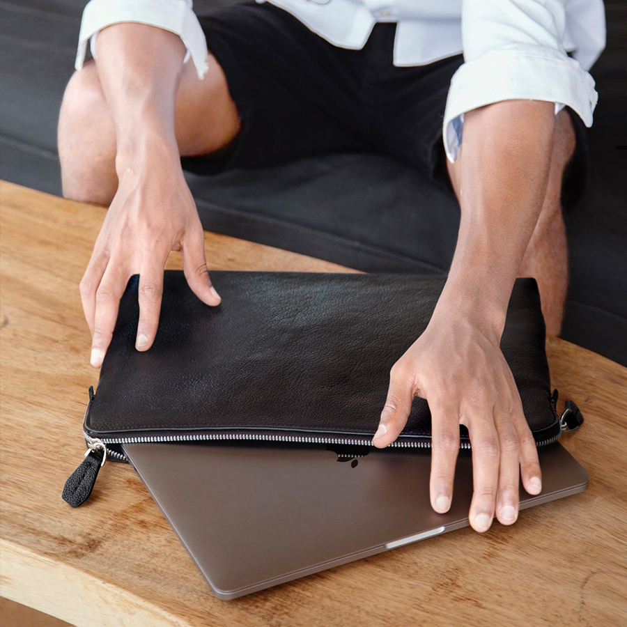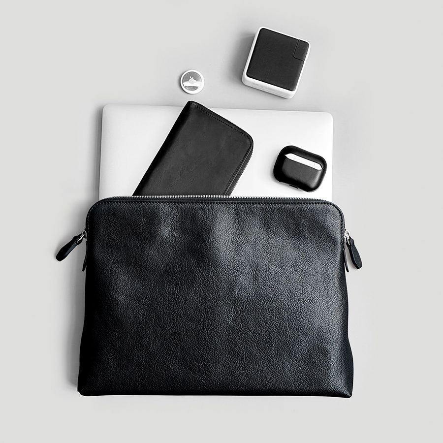Zipped dark bag with mobile phone bag document bit computer inserted bag