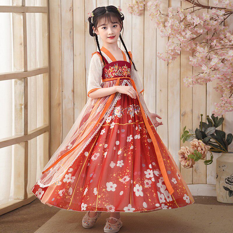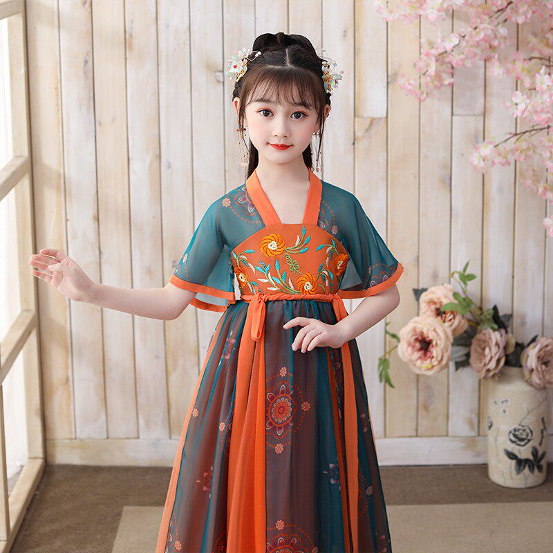 Ancient Girl Super Fairy New Han Wear Summer Show Performance Mid-Autumn Children's Princess Girl Super Fairy Chinese Fence
