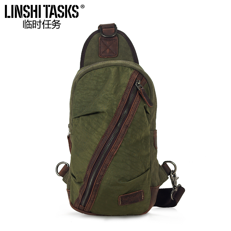 Chest bag men's bag cowhide canvas sports casual shoulder Messenger bag trendy nylon large-capacity retro small backpack - Taobao