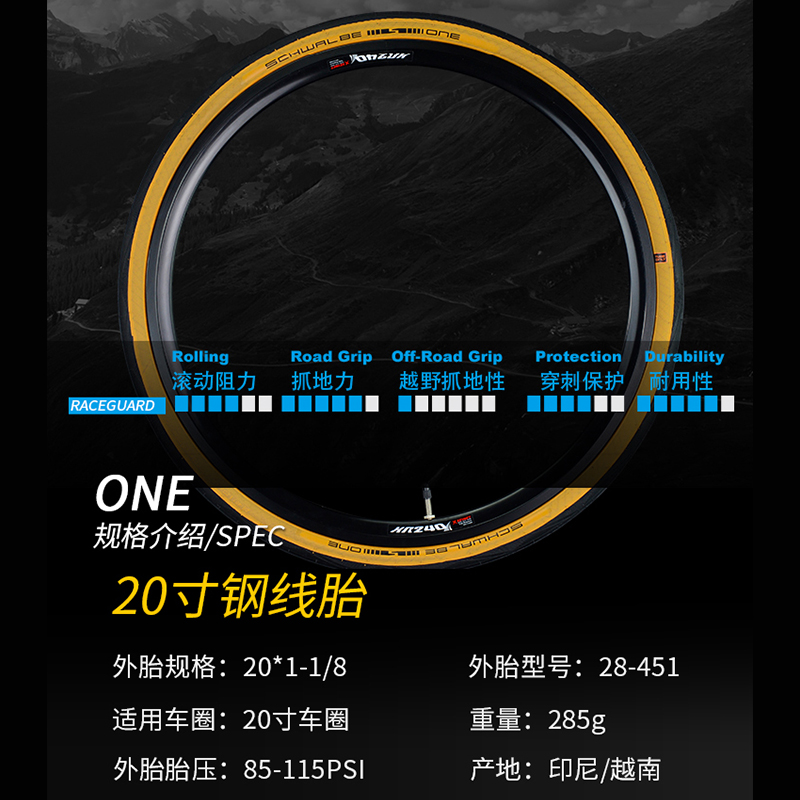 Schwalbe Shiwen 451 outer tire 28-451 20x1 1 8 retro small wheeler yellow black border stab tire-Taobao