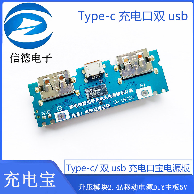 Type-c charging port dual usb mobile charging source board boost module 2 4A mobile power DIY motherboard 5V - Taobao