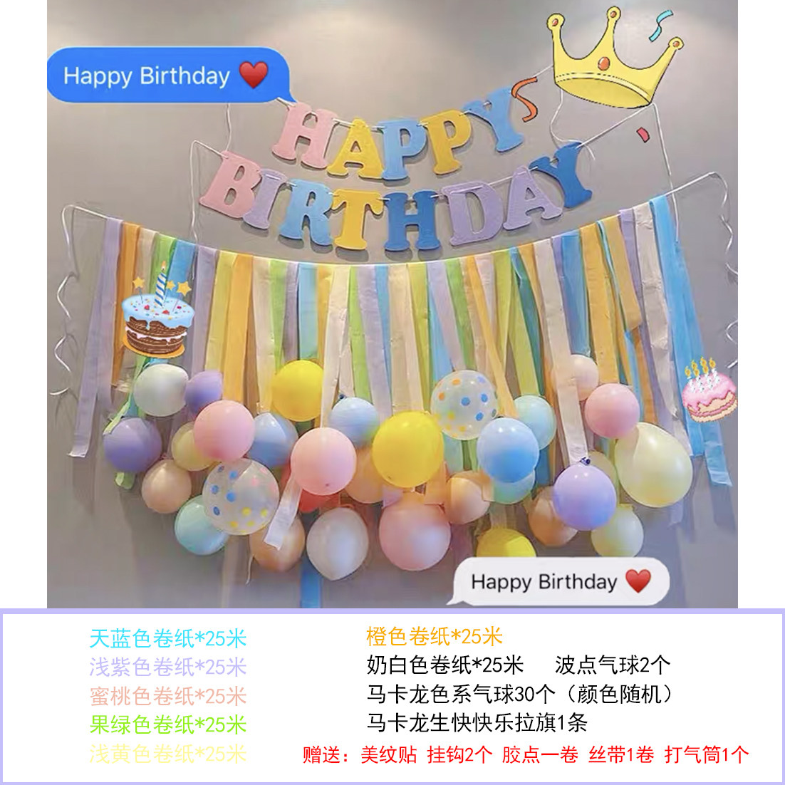 More birthday theme styles Posey and Pip KT board set (free base bracket) Macaron package (non-woven birthday flag) 7 colors Xiaohongshu same style (polka dot package) macaron 7 colors
