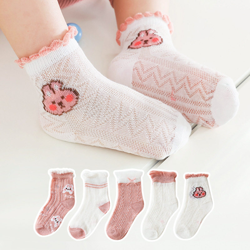 5 double sweet and strawberry lace stretch mesh spring summer thin cotton new 0-1-3-5-10-year-old girl baby socks