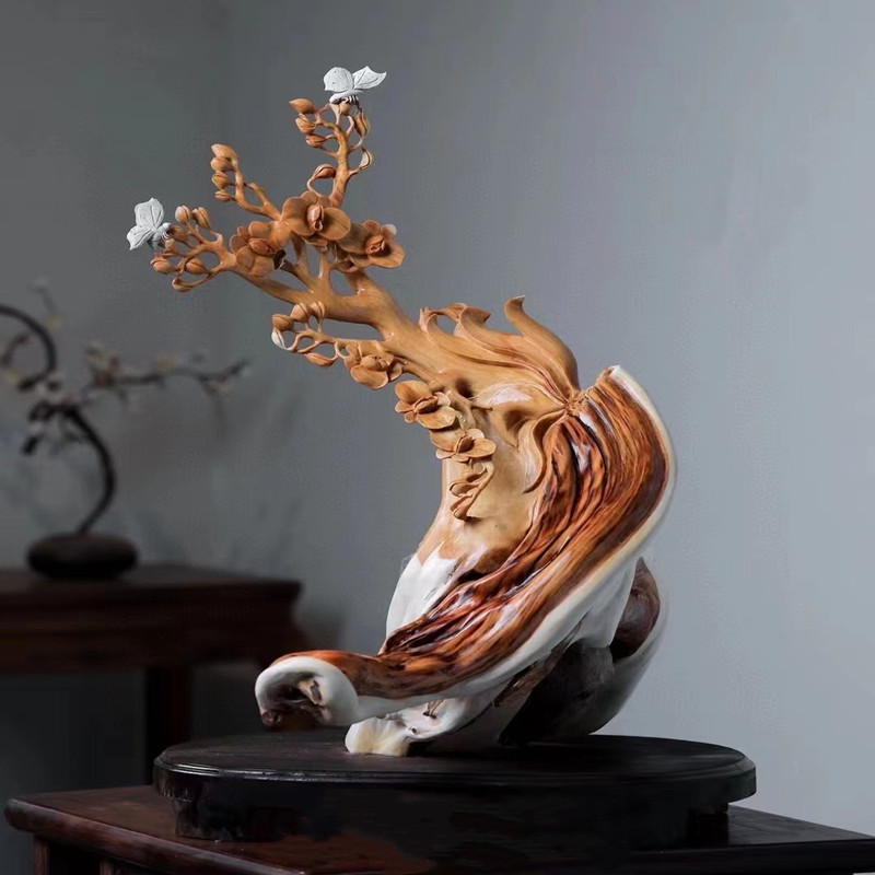 Taihang Cliff Cypress Aging Material Landscape Flowers Birds Tree Root Decoration Root Carving Wood Carving With Shape Ruyi Ornaments Stick Handle Pieces